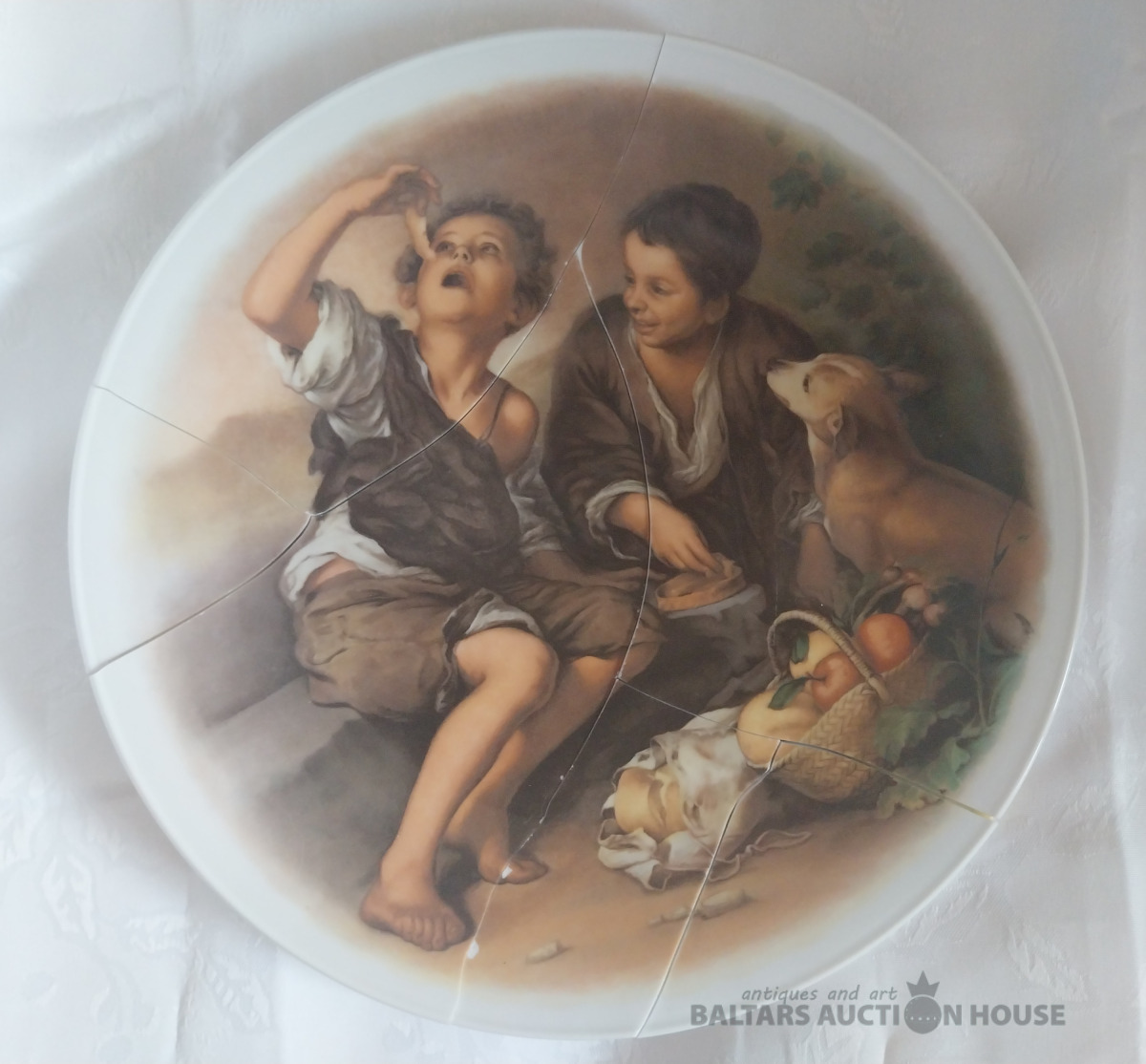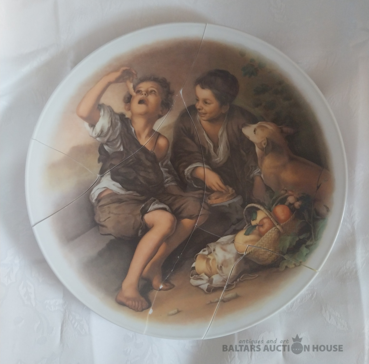 Dekoratīvs gleznas škīvis. Vācija. nr 1. Porcelāns. Sašķelts, nepieciešama restaurācija jeb daļas rokdarbiem. D ~ 23 cm.