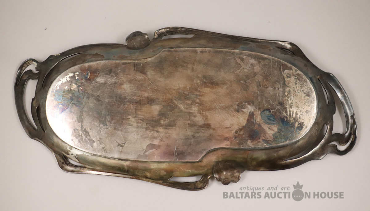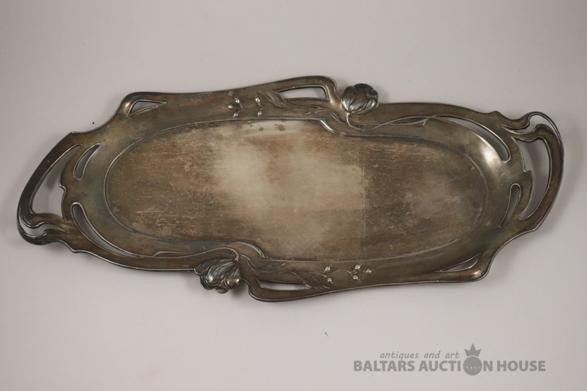 PAPLĀTE. Jūgendstils. Apsudrabots metāls. 49x22 cm