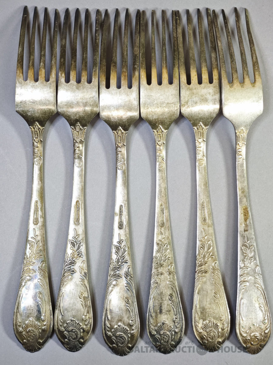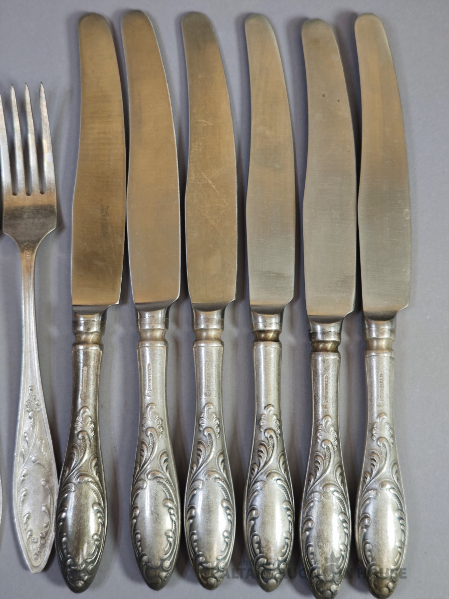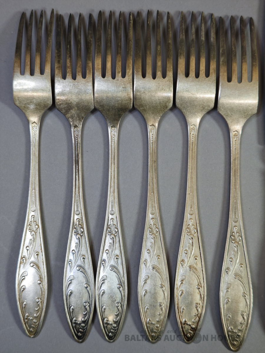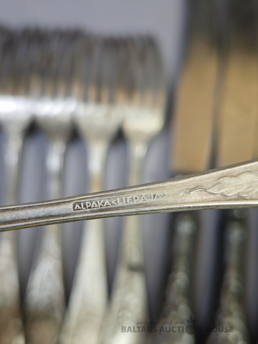 Dakšu un nažu komplekts, meļhiors (alpaka) apsudrabojums, Liepāja, 1930-tie