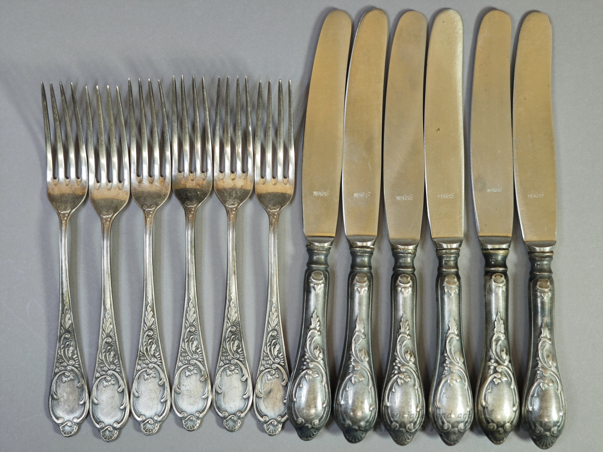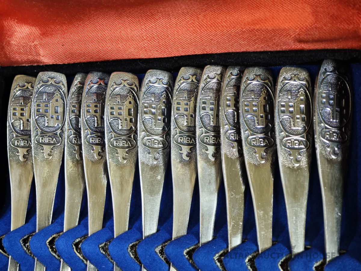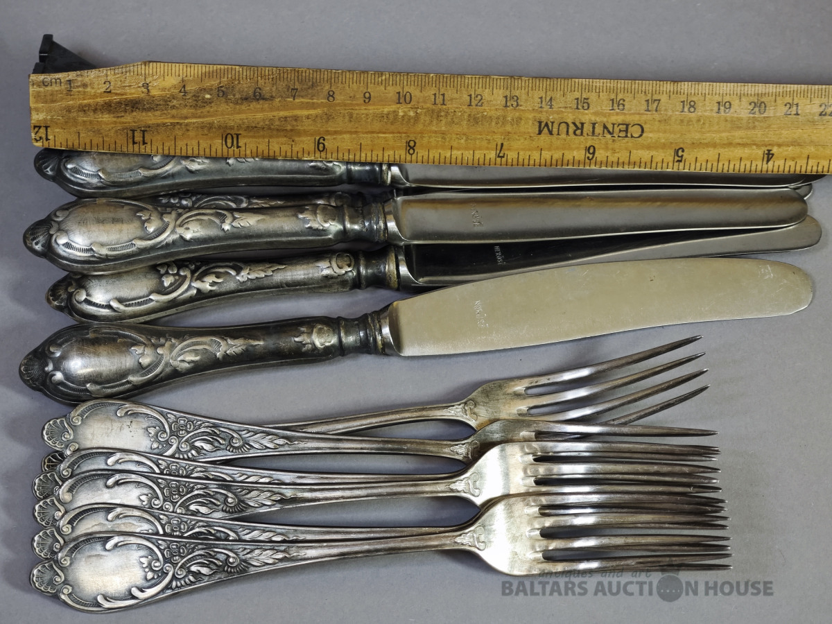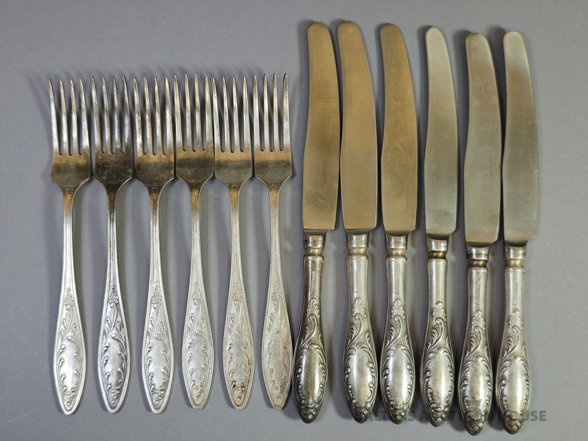 Dakšu un nažu komplekts, meļhiors (alpaka) apsudrabojums, Liepāja, 1930-tie
