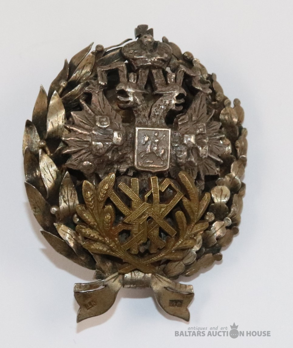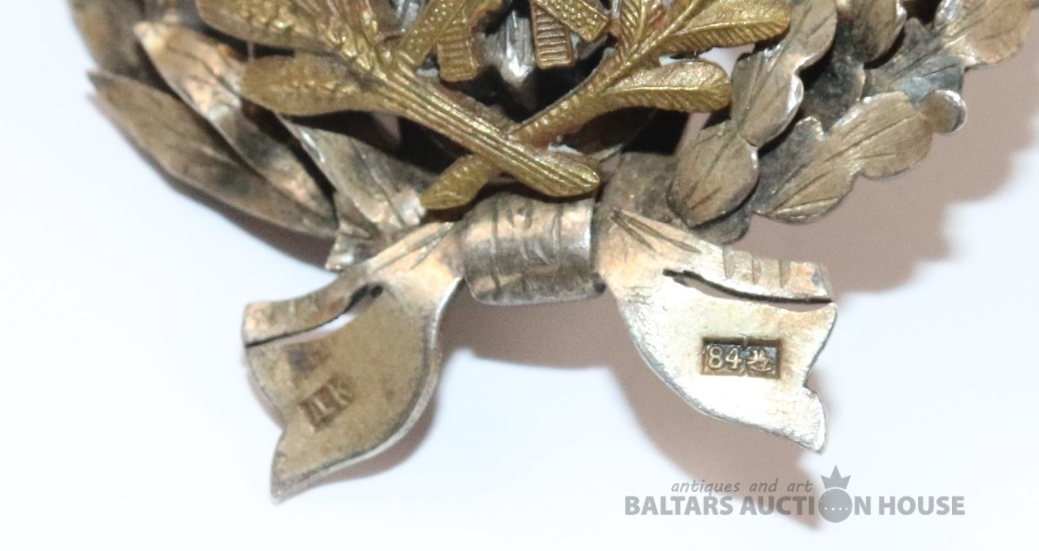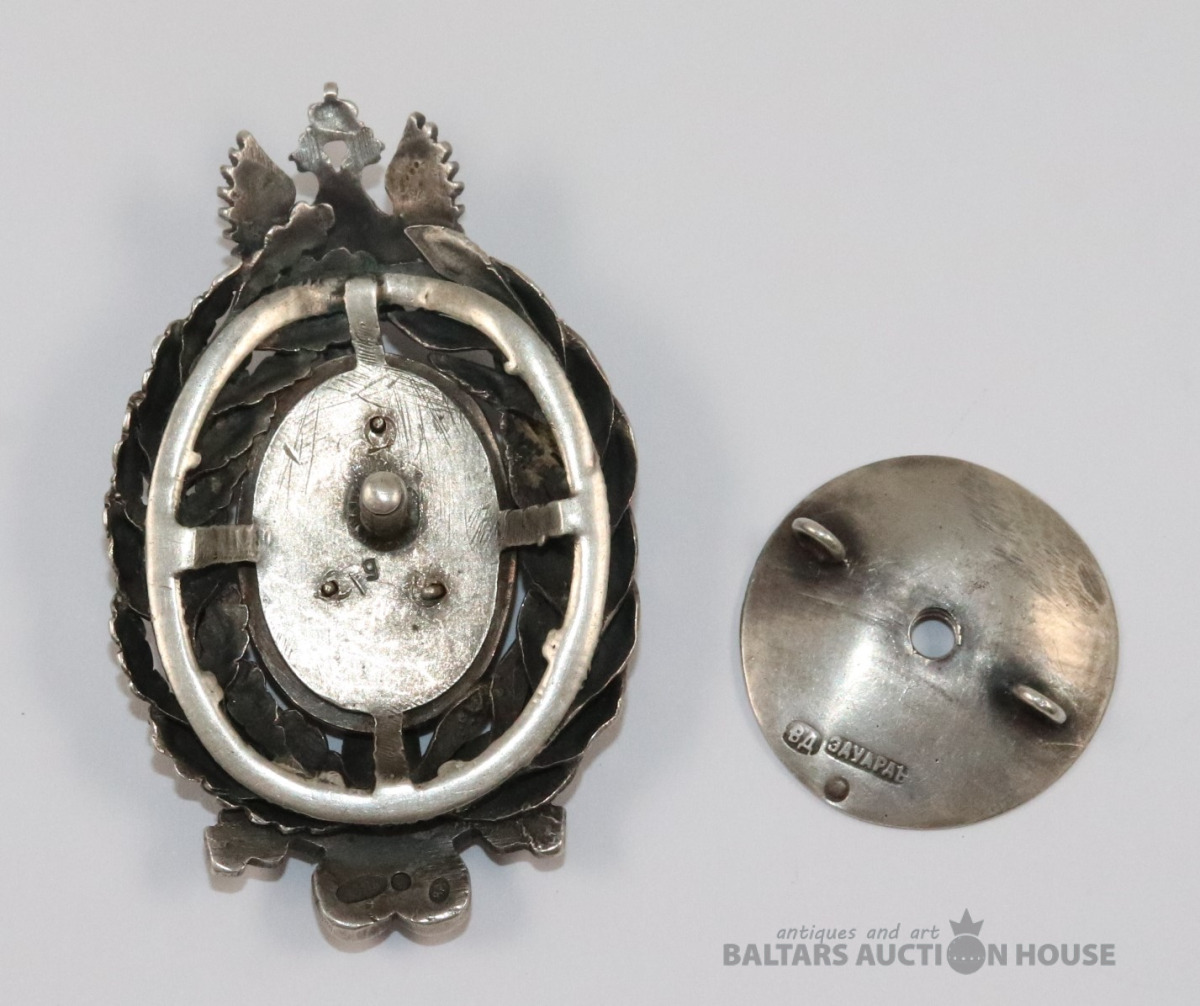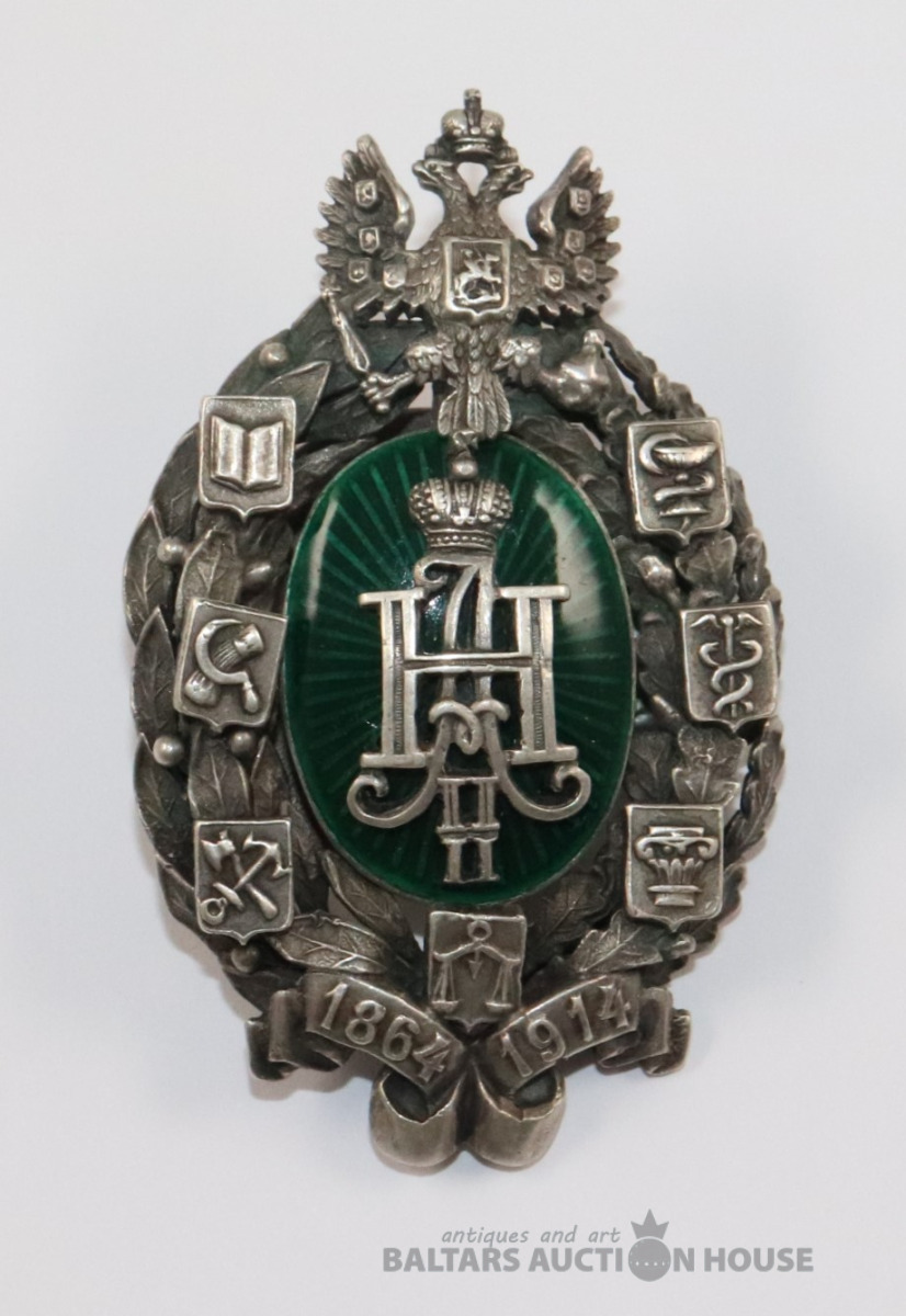 Nozīme ZEMSTES IESTĀŽU 50 GADU JUBILEJA 1864. - 1914. Sudrabs 84. B.A., emalja. Svars 44,57 g. 6,5x4 cm