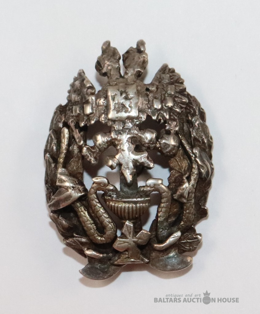 Nozīme PAR MEDICĪNAS SKOLAS ABSOLVĒŠANU. Sudrabs 84. Svars 7,12 g. 3,3x2,1 cm