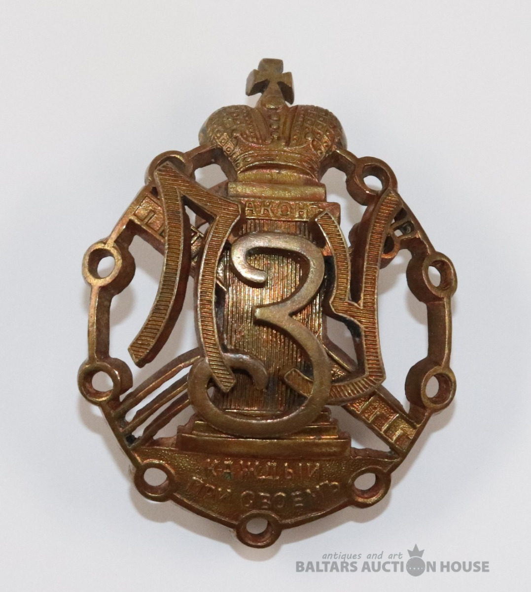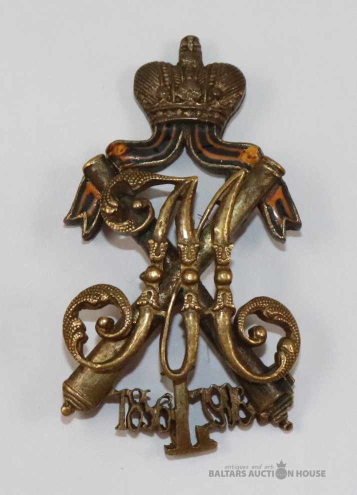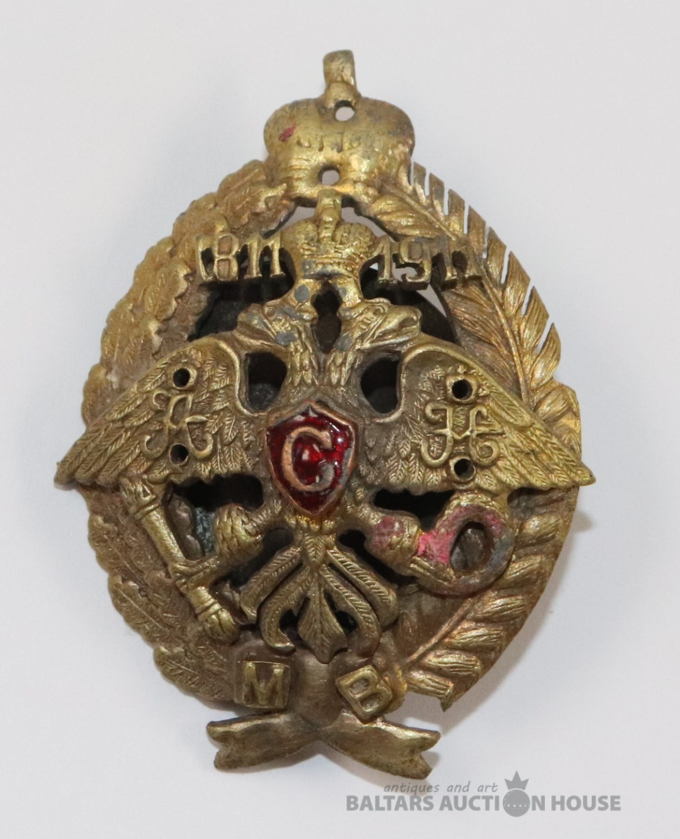 Nozīme LIELKŅAZA MIHAILA NIKOLAJEVIČA ATRAŠANĀŠ ĢENERĀĻA FELDMARŠALA AMATĀ 50 GADU JUBILEJAS PIEMIŅAI. Misiņš, emalja. 5x3 cm