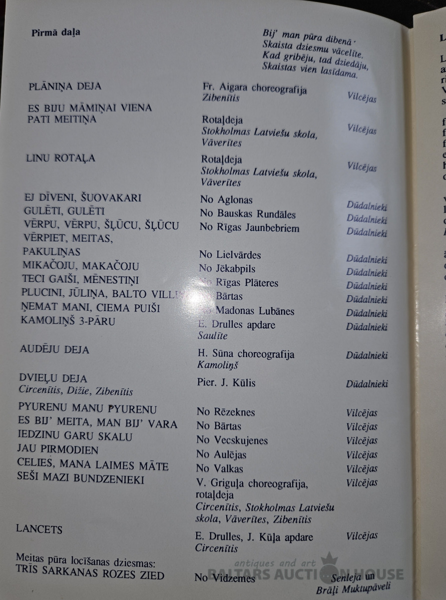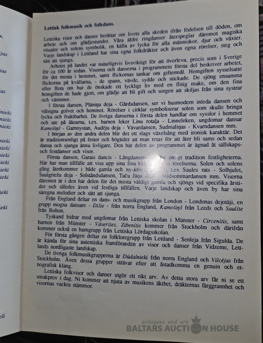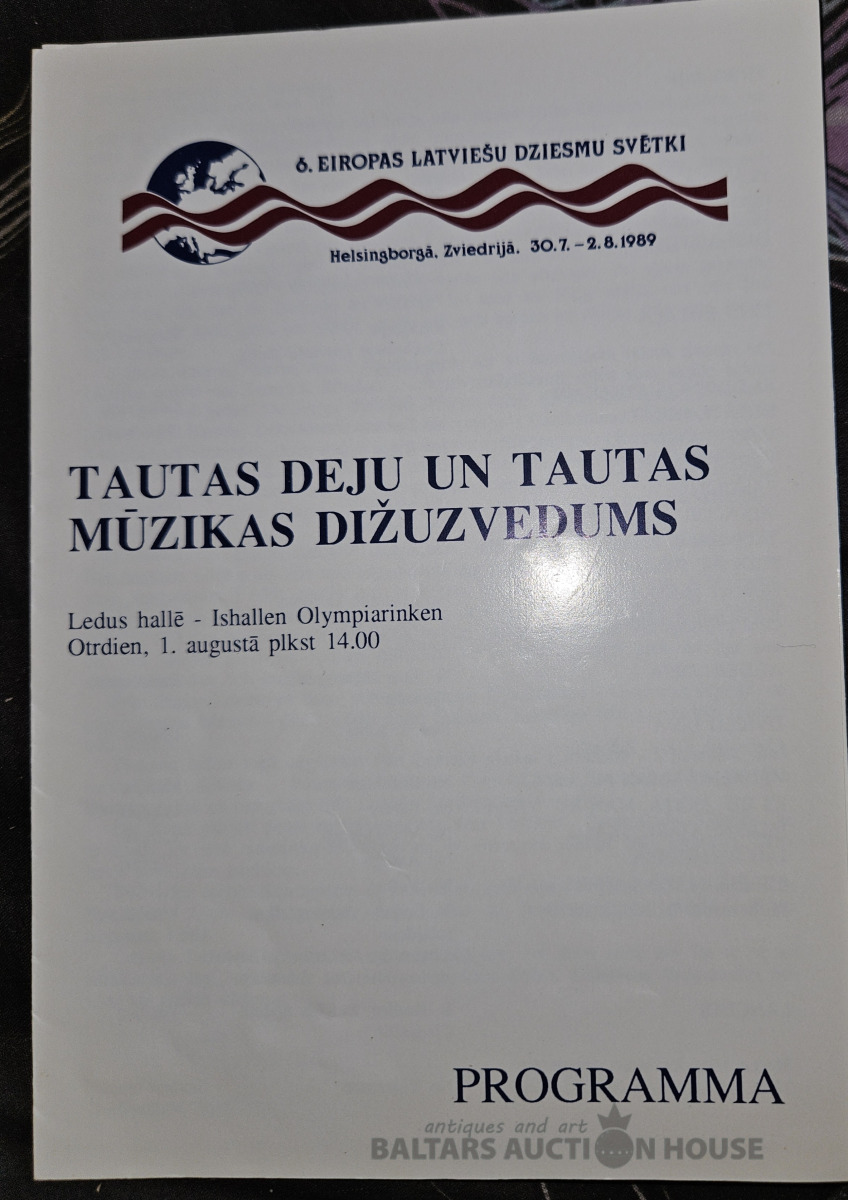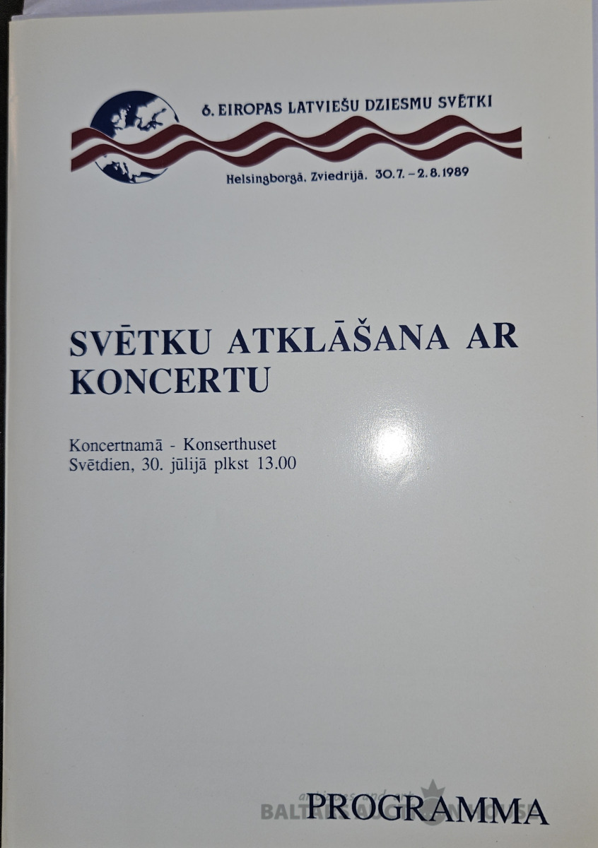 6.Eiropas latviešu dziesmu svētki. Helsingborgà.Zviedrijà 30.7.-2.8.1989. Tautas deju un tautas mūzikas dižuzvedums.Programa.