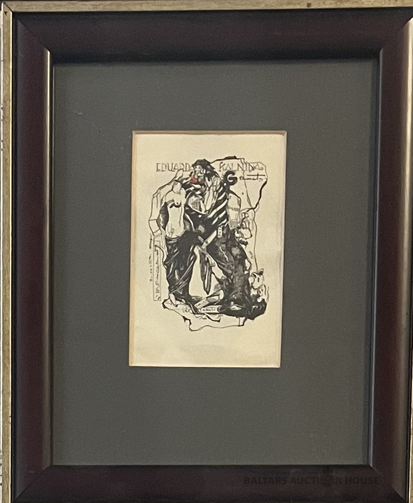 Kārlis Padegs 1911.1940. Ex libris "ED.KALNIŅA GRĀMATA", gleznotājam Eduardam Kalniņam darināta , papīrs, tipogrāfija,