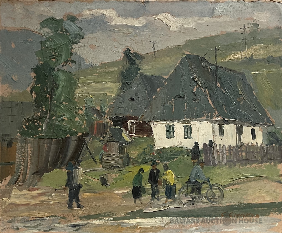 Stepans Skakuns 1921.1985. "Ainava ar riteņbraucējiem", k.e., 53x65 cm.