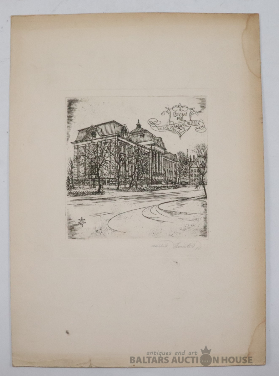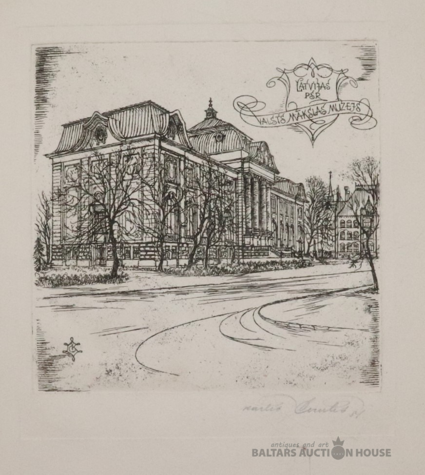 Kārlis Cīrulis (1925 - 1994). MĀKSLAS MUZEJS. Papīrs, oforts. 12,5x12,3 cm. 1984. g.