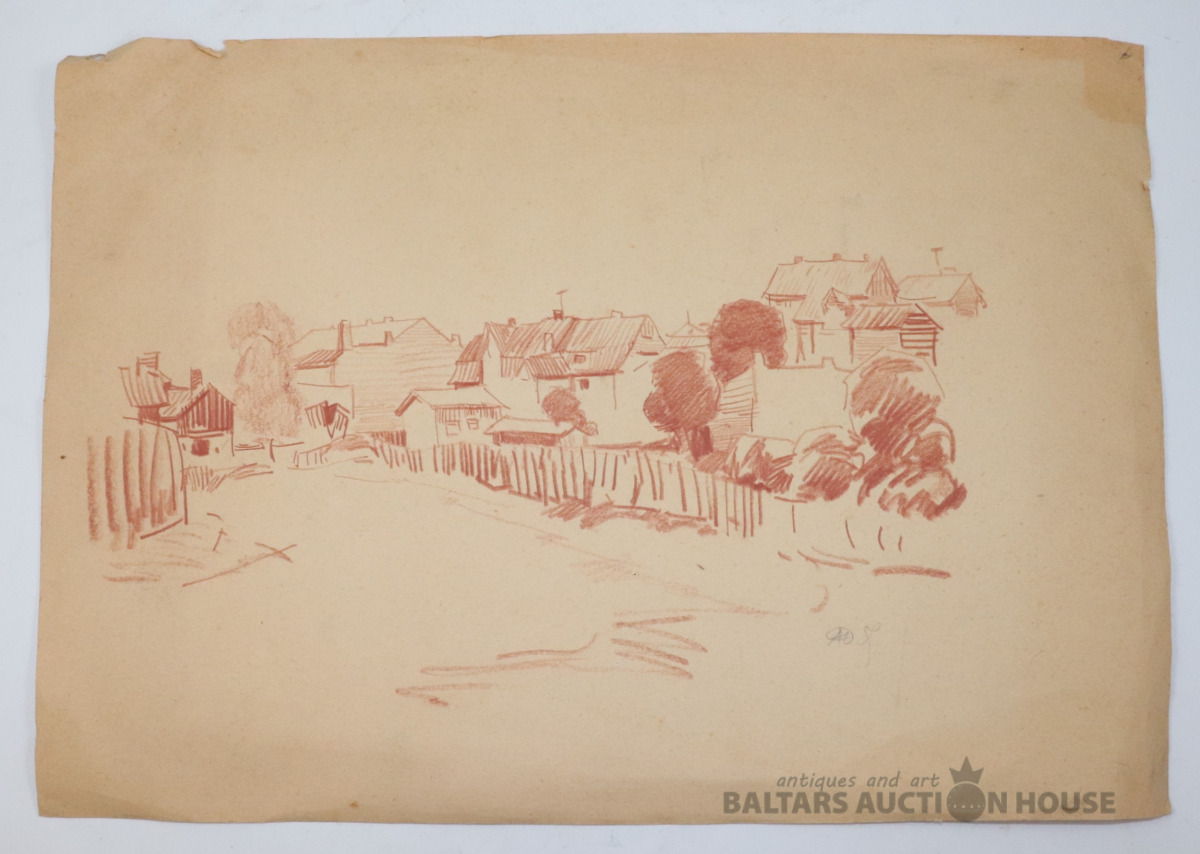 A.D. PILSĒTAS AINAVA. Papīrs, sangina. 29,5x42 cm