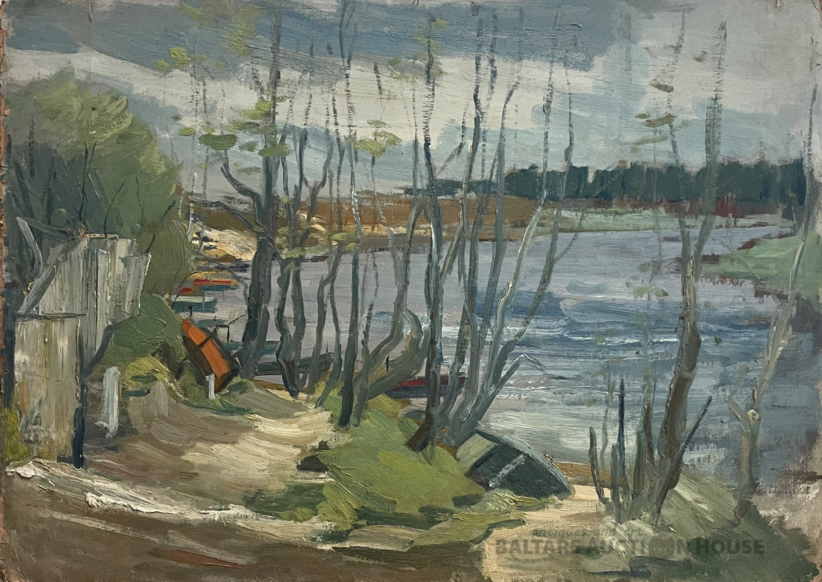 Stepans Skakuns 1921.1985. "Ainava ar laivām", k.e., 56x81 cm.