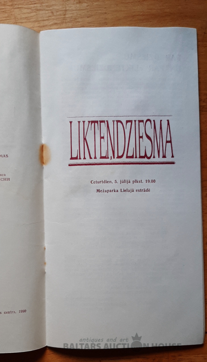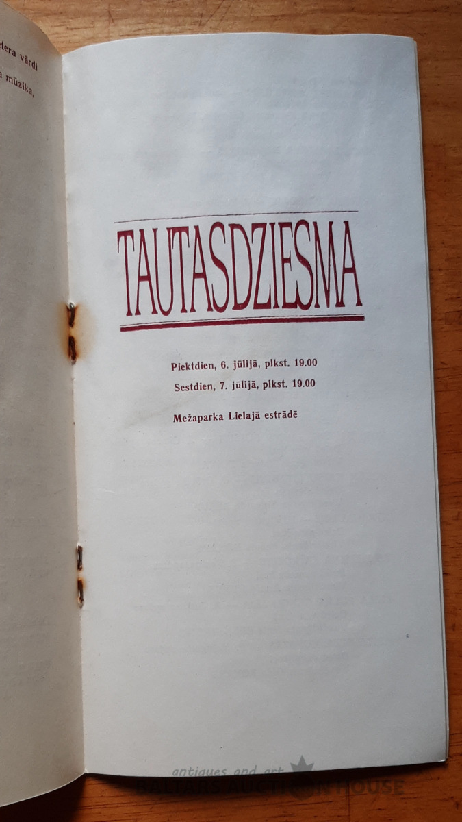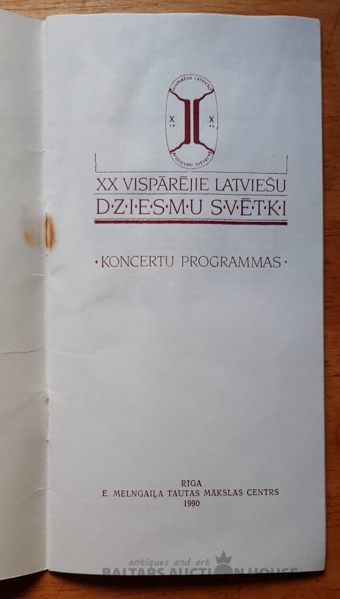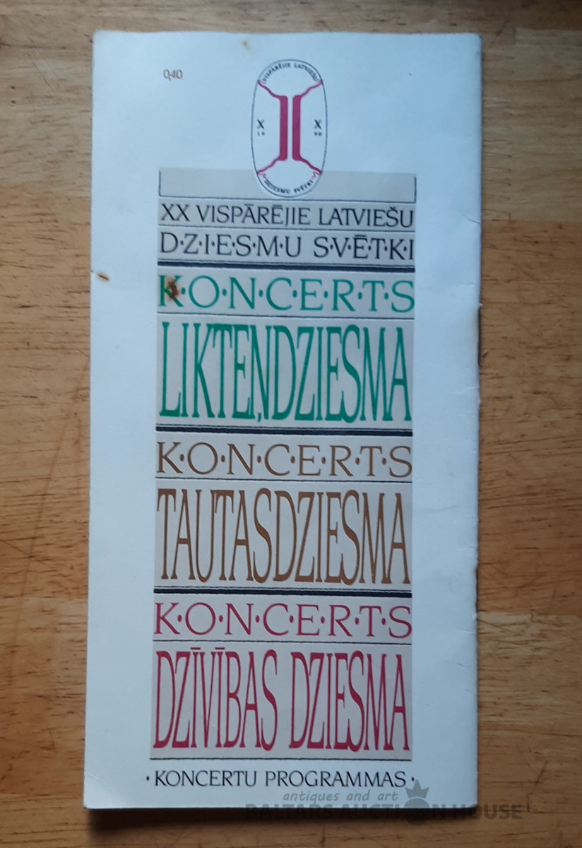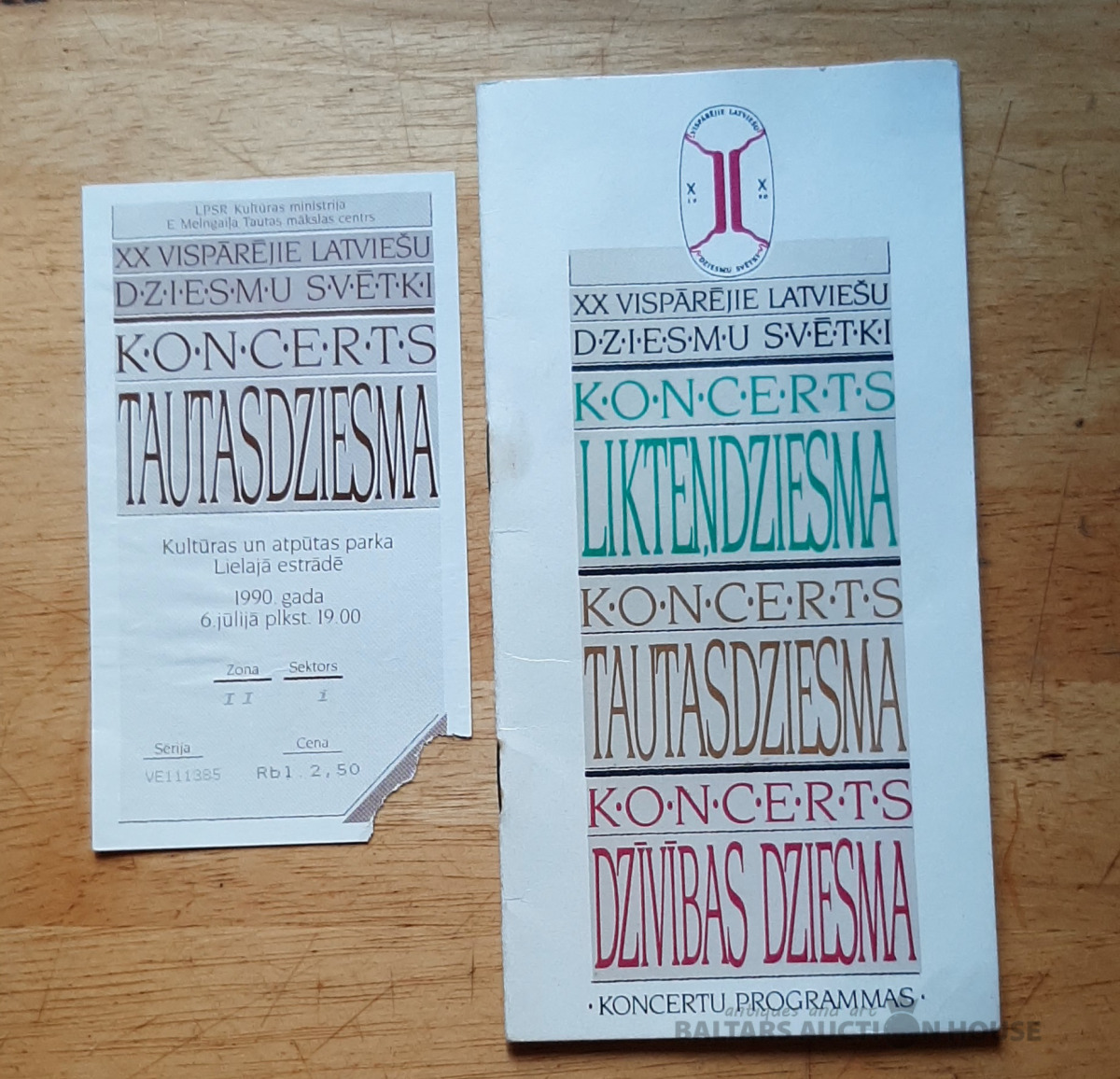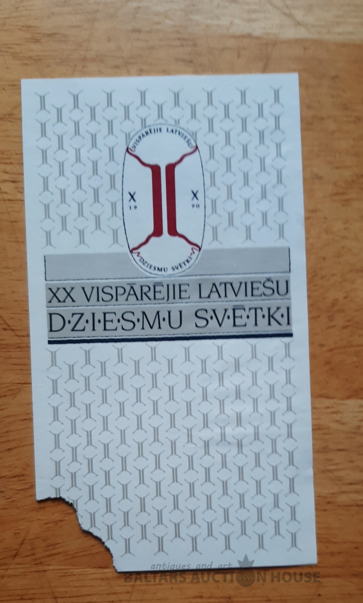 Biļete un koncerta programma xx vispārējie Latviešu Dziesmu svētki 1990 gads.
