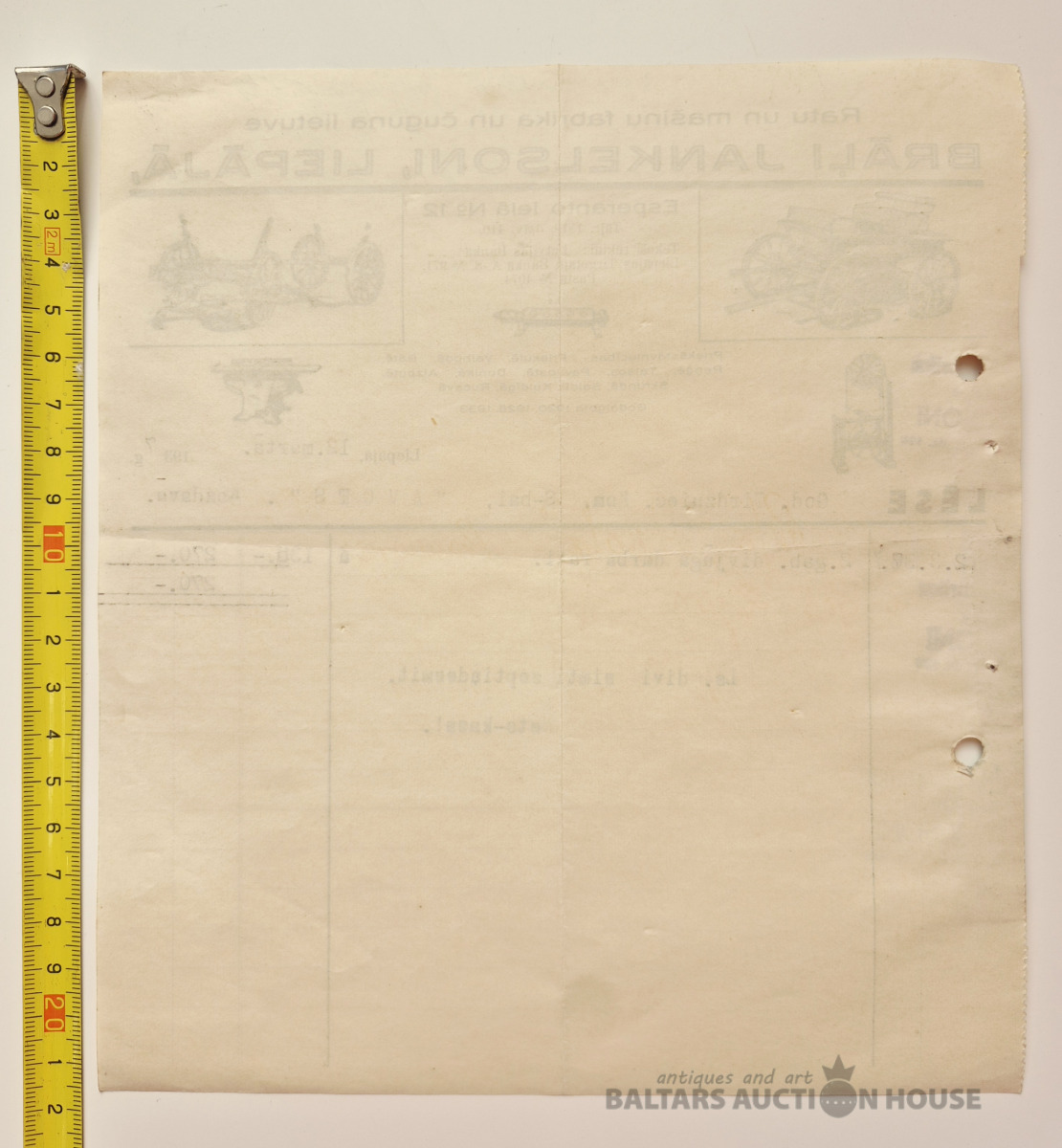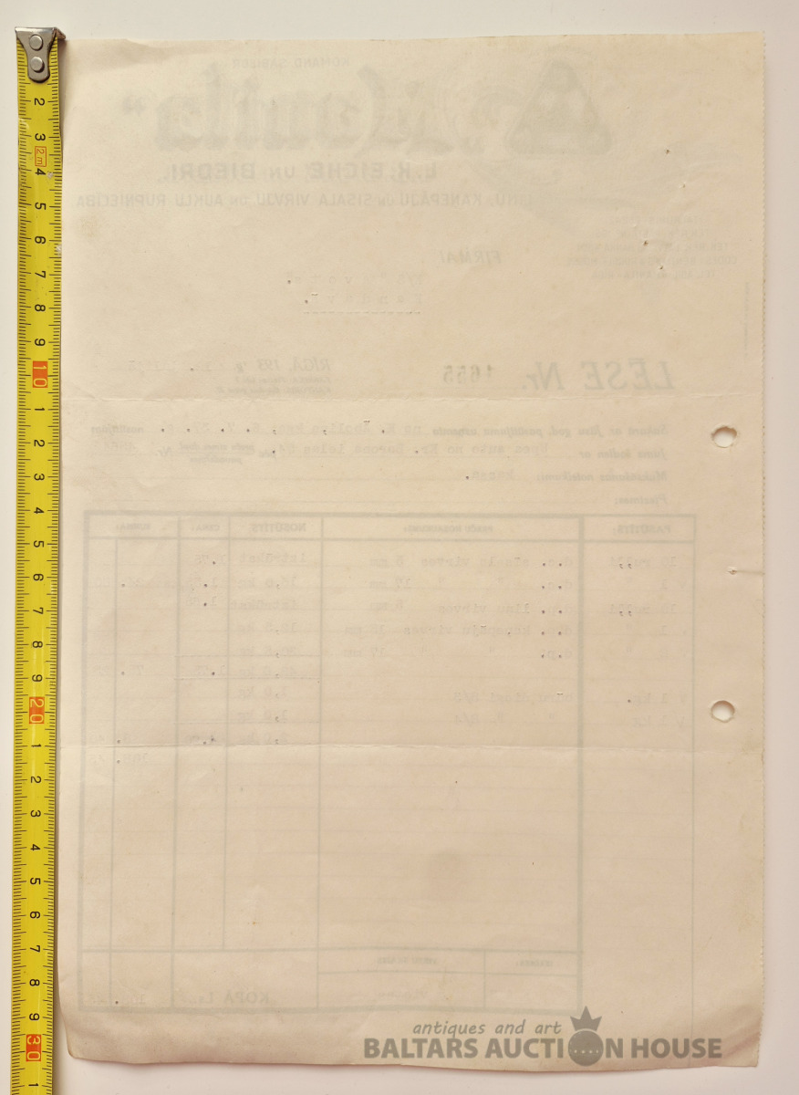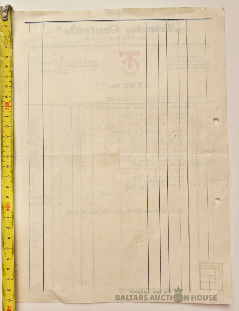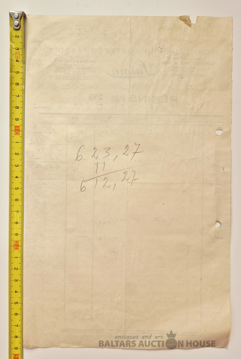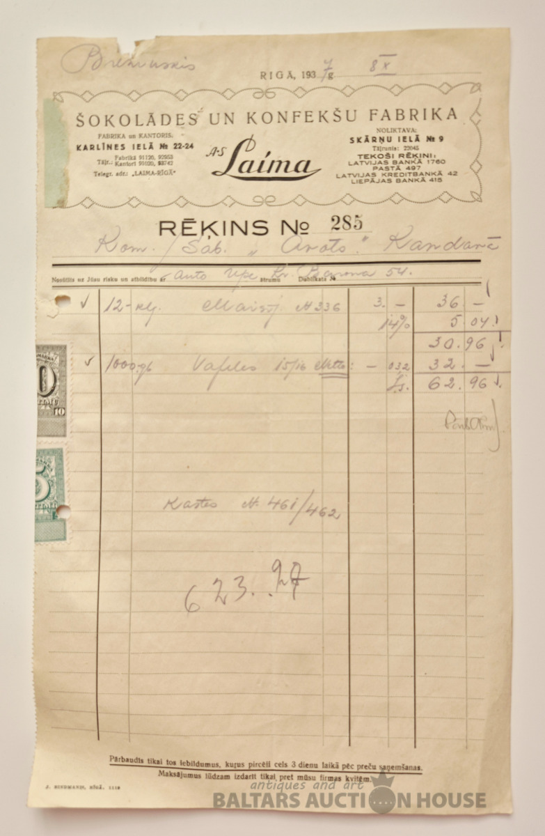 Rēķins. Šokolādes un konfekšu fabrika " Laima", 1937g.