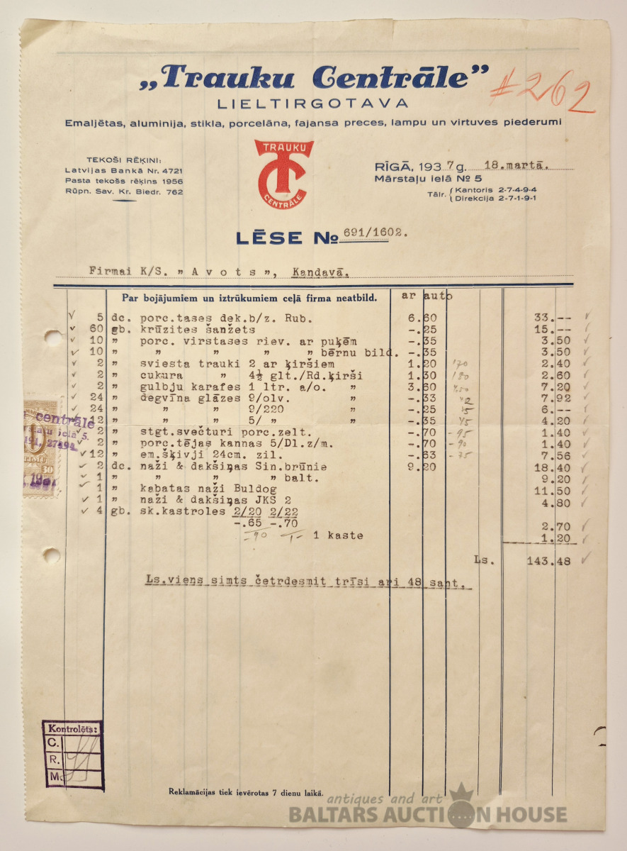Lēse. Lieltirgotava "Trauku Centrāle", 1937g.