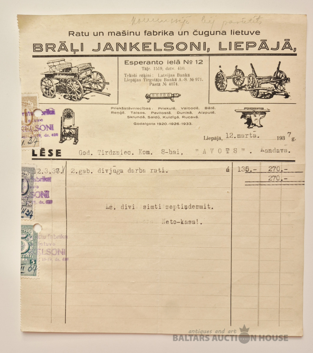 Lēse. Ratu un mašīnu fabrika un čuguna lietuve "Brāļi Jankelsoni", Liepāja, 1937g.