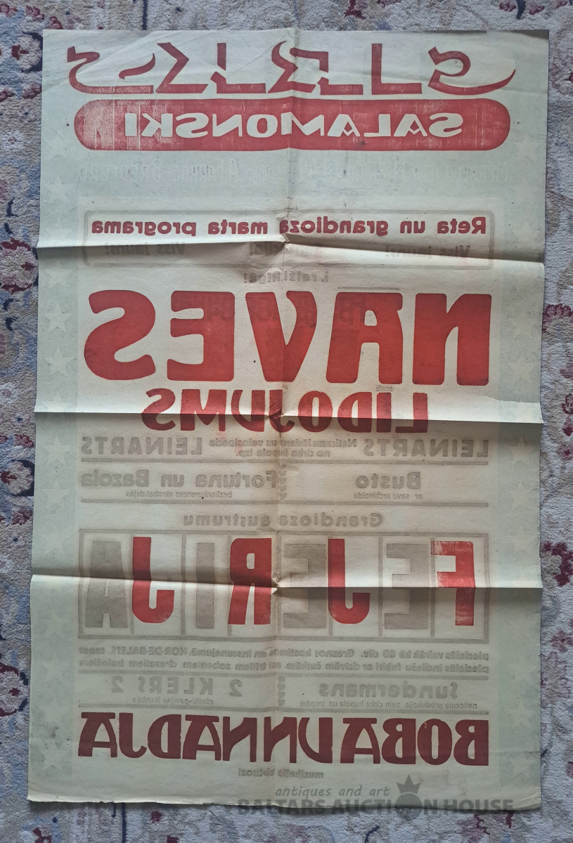 LPSR Reklāmas plakāts "Фестиваль Латышских фильмов" Plīsumi gar malām. 61x90 cm