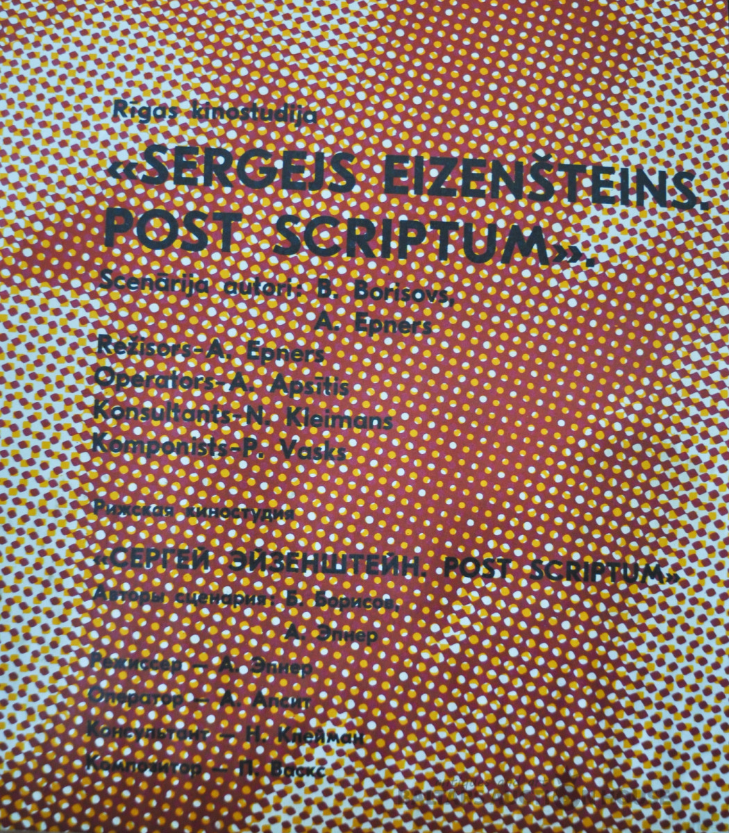 Rīgas Kinostudijas filmas "Sergejs Eizenšteins. Post Scriptum" Divpusējs reklāmas plakāts. 1979. 57x87 cm.