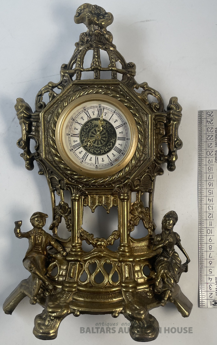 KAMĪNA PULKSTENIS, bronza, h=36,5 cm, pulksteņa darba spējas nav zināmas