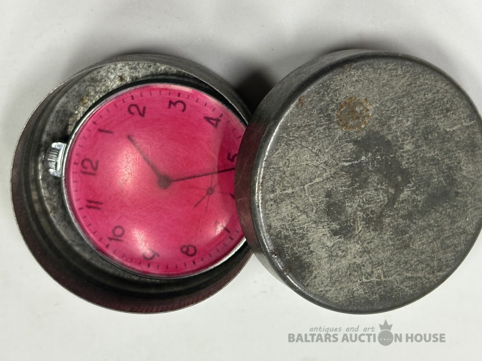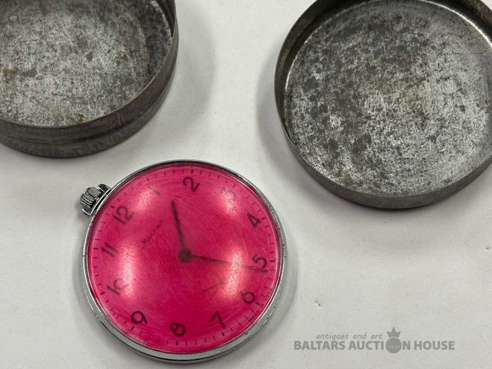 Kabatas pulkstenis metāla kārbiņā.