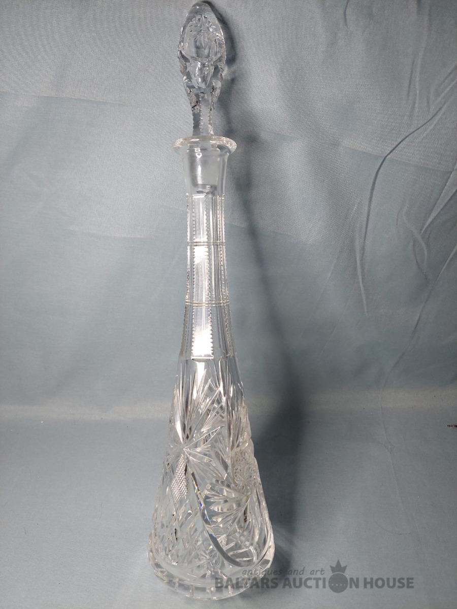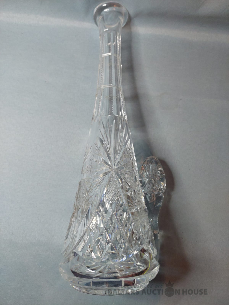 Iļģuciema slīpēta kristāla karafe . Smalks roku gravējums. H-43cm., 1930-40gadi. .Bez defektiem.