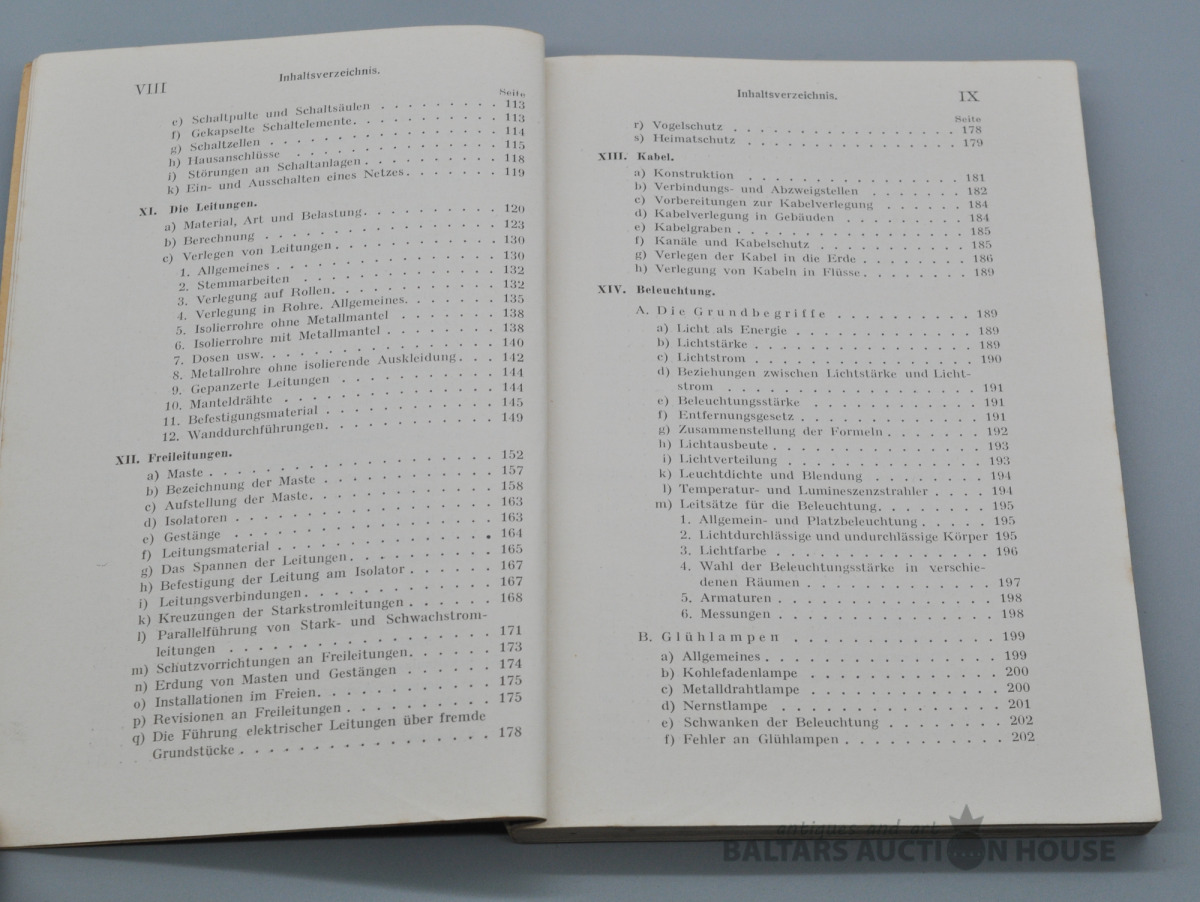 Elektrisko apgaismes un spēka iekārtu montāža. Leipzig 1926. 255 lpp.