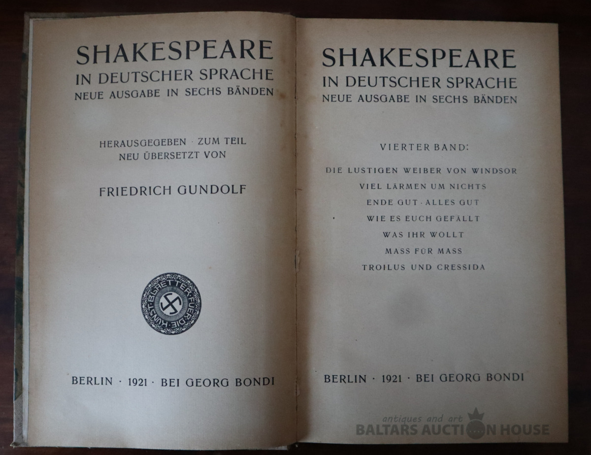 "Šekspīrs Vācu valodā" 5 daļās 1921.g.(nav 2.daļas)