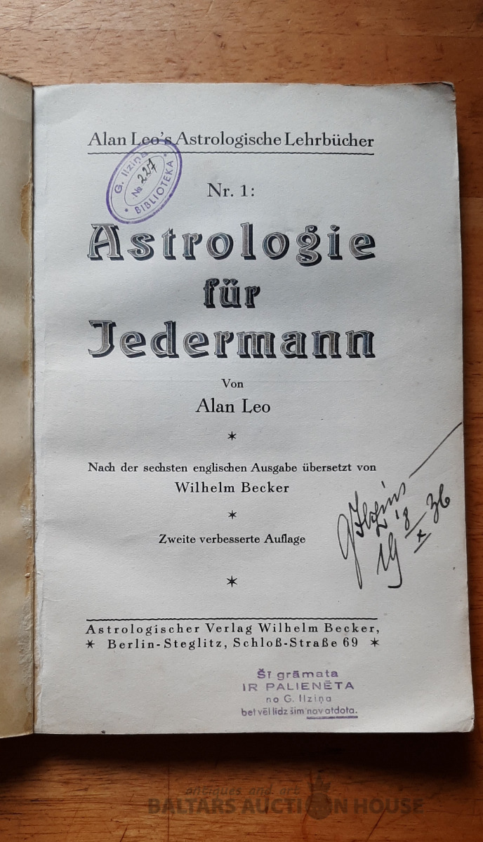 Astroloģija ikvienam 1930.gadi,vācu valodā,144.lpp.