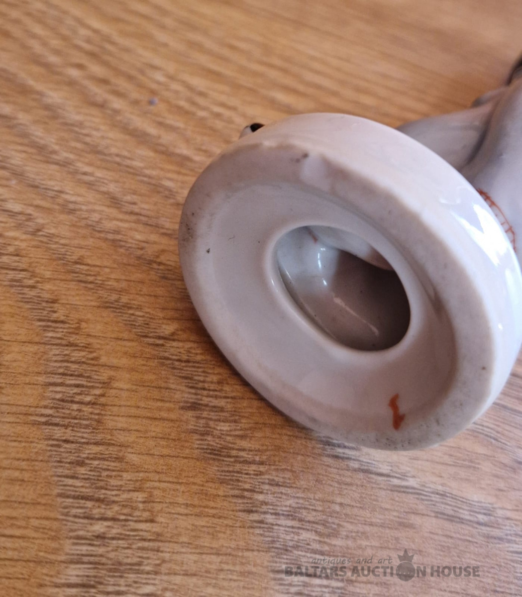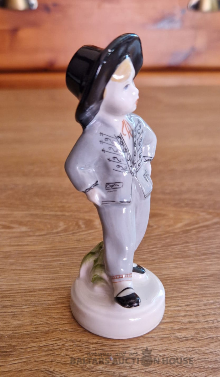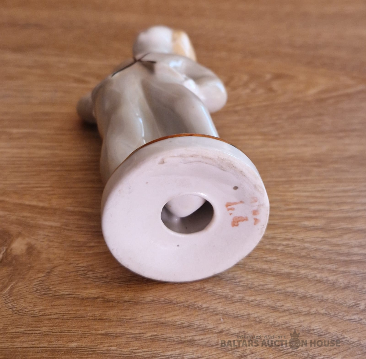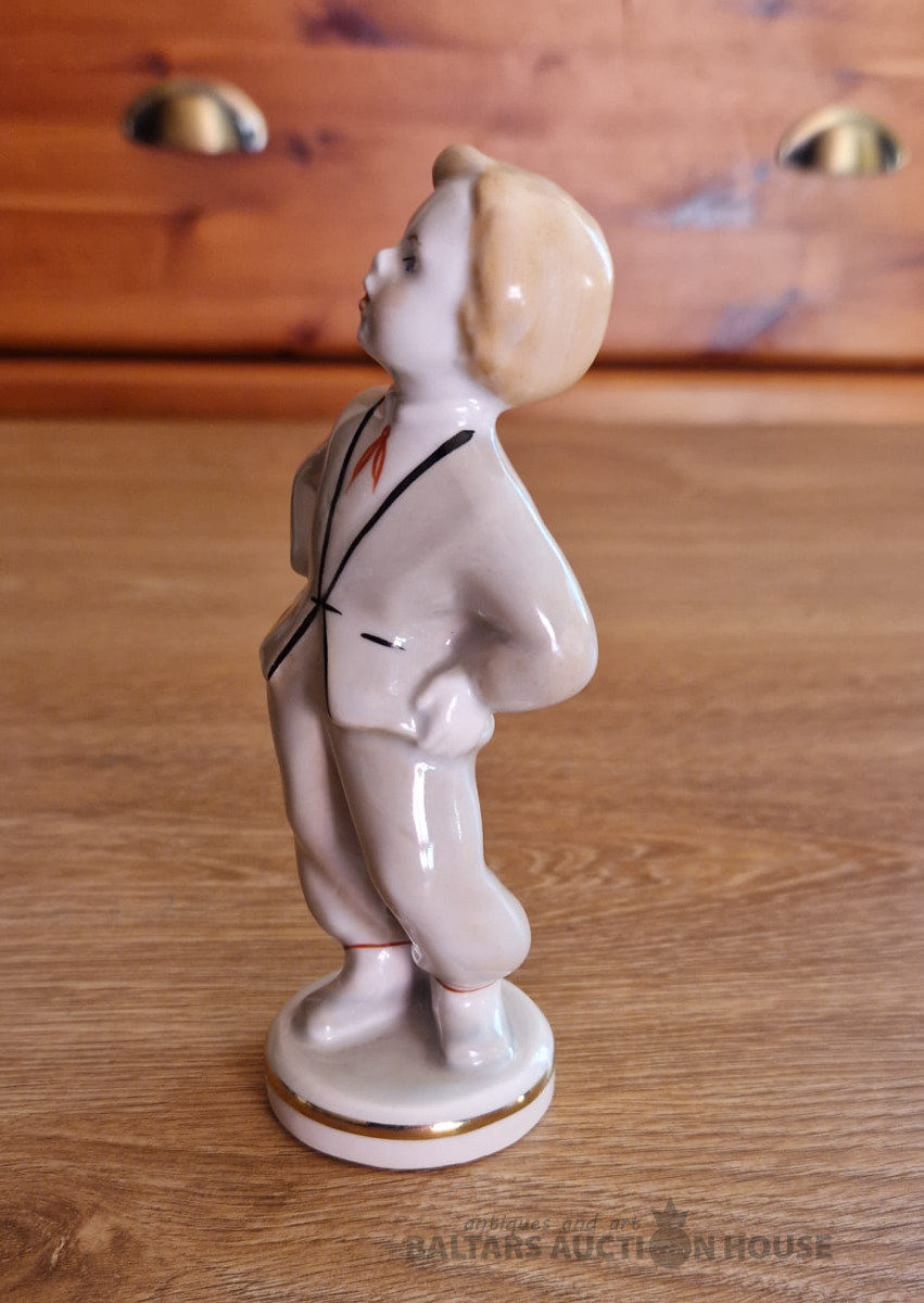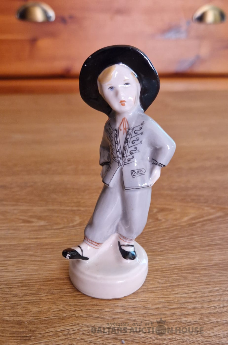 Rīgas porcelāns . Puisis no pārīša , ar retāku apģērba rotājumu , blondiem matiem . pamatnei apakšā robs , nedaudz noberzta pastalas krāsa