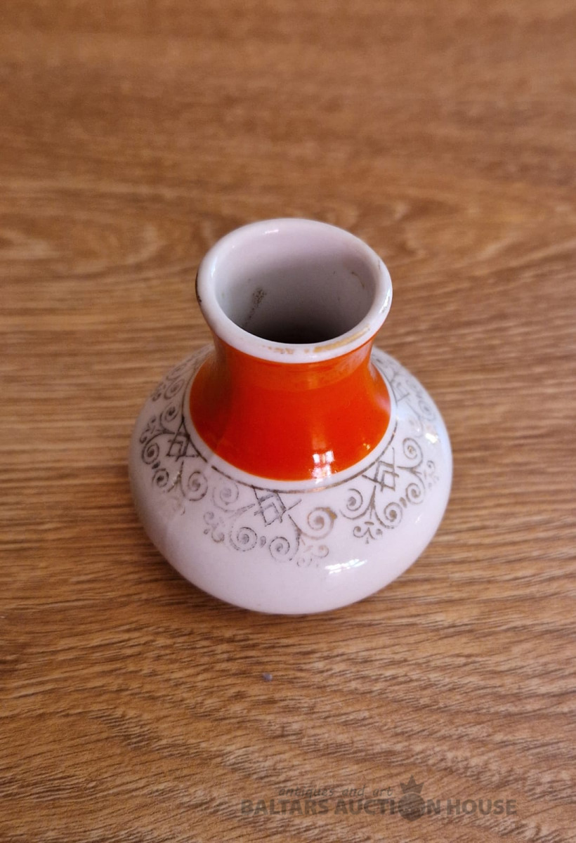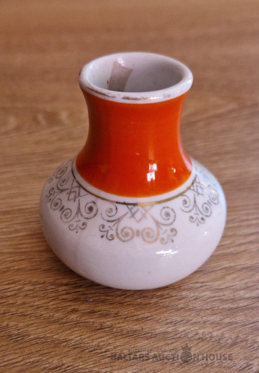 Rīgas porcelāns , miniatūra vāzīte H - 5,5 cm , padilis zeltījums