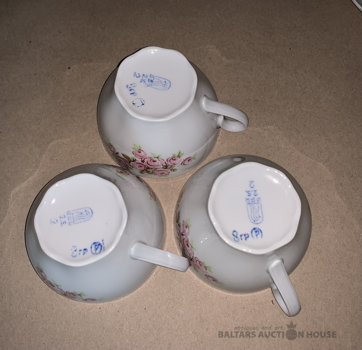 Tases ar apakštasēm Ārija. 3 gab. Porcelāns, RPR.