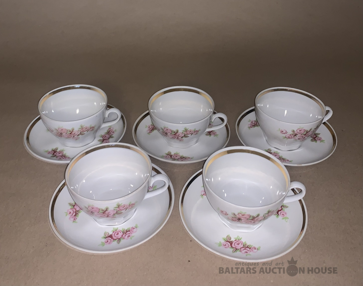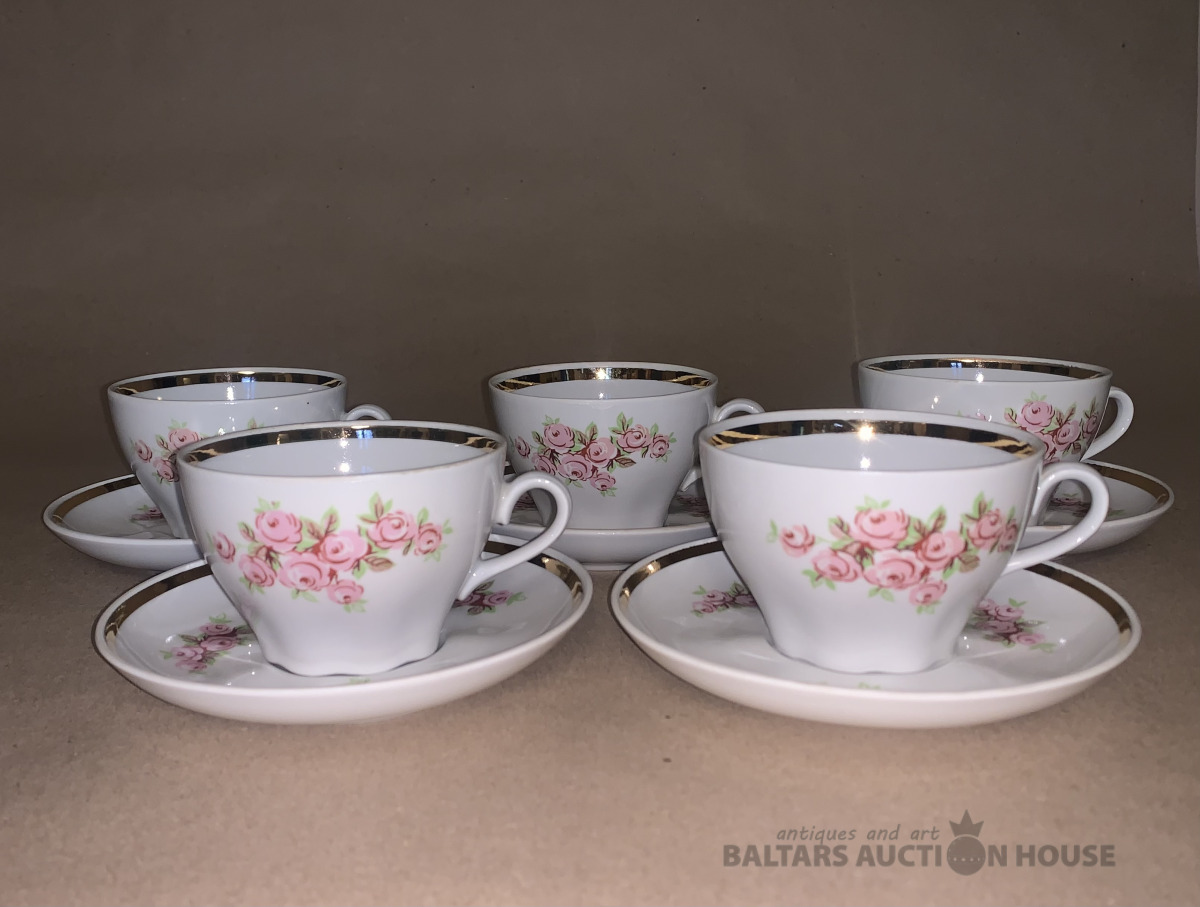 Tases ar apakštasēm Ārija. 5 gab. Porcelāns, RPR.