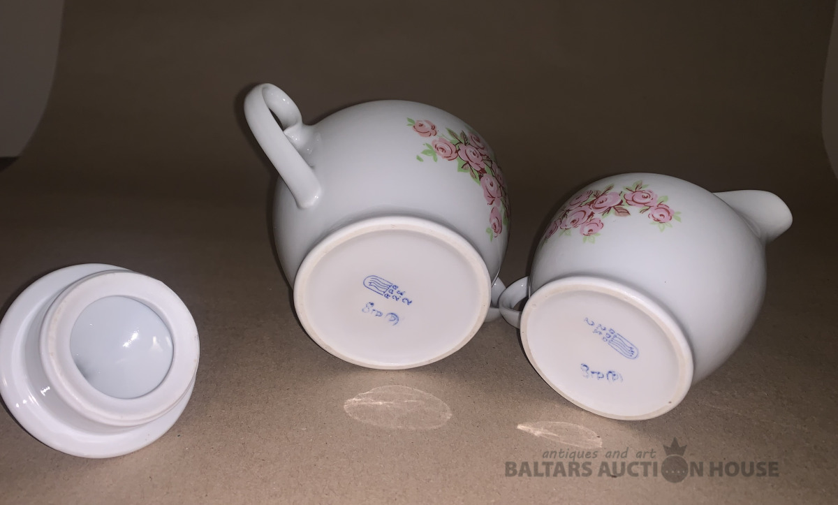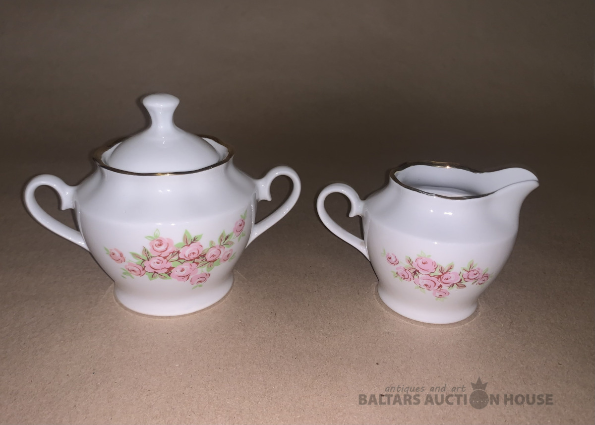 Cukurtrauks un krejuma trauks Ārija. Porcelāns, RPR.