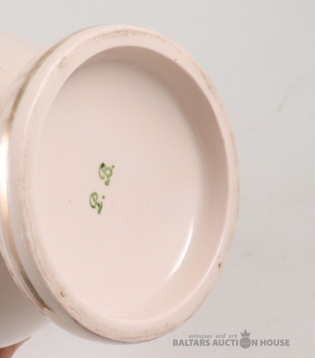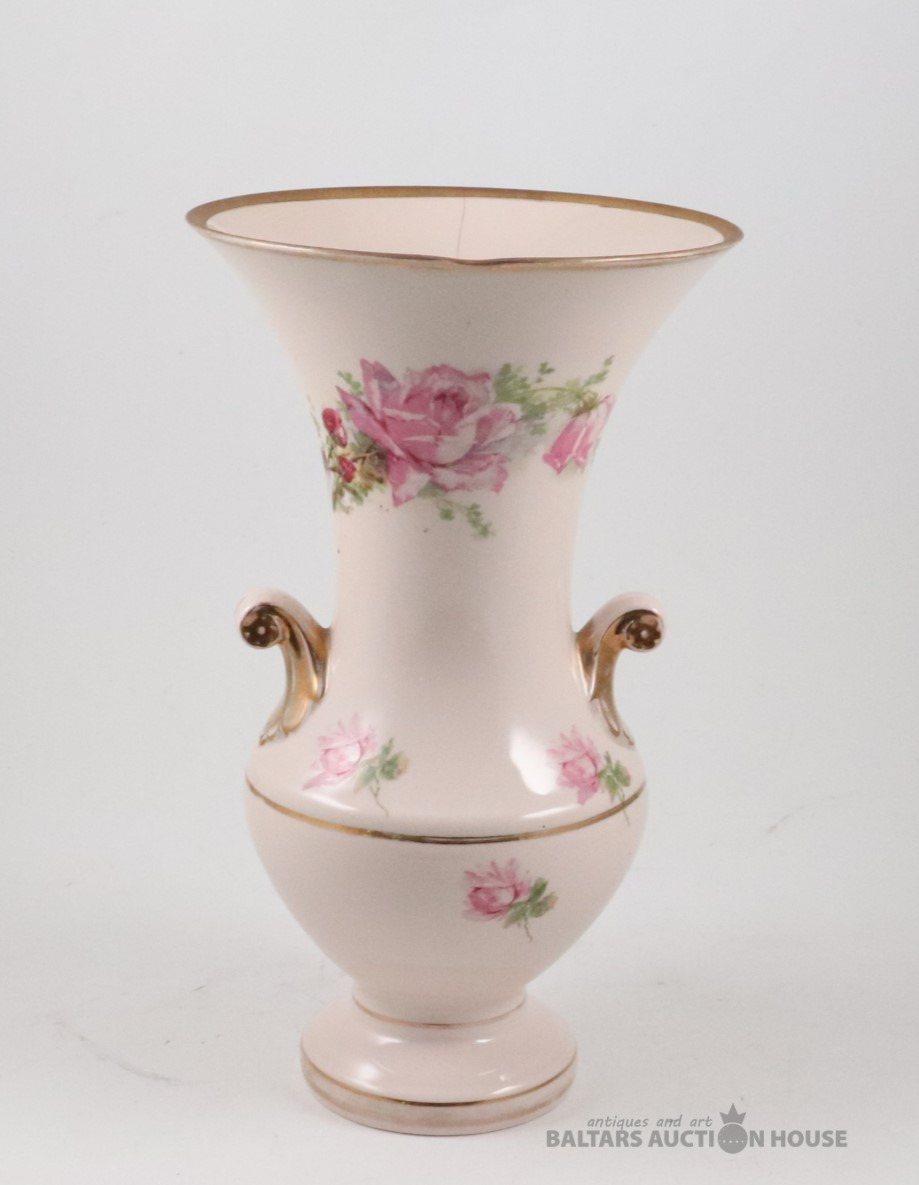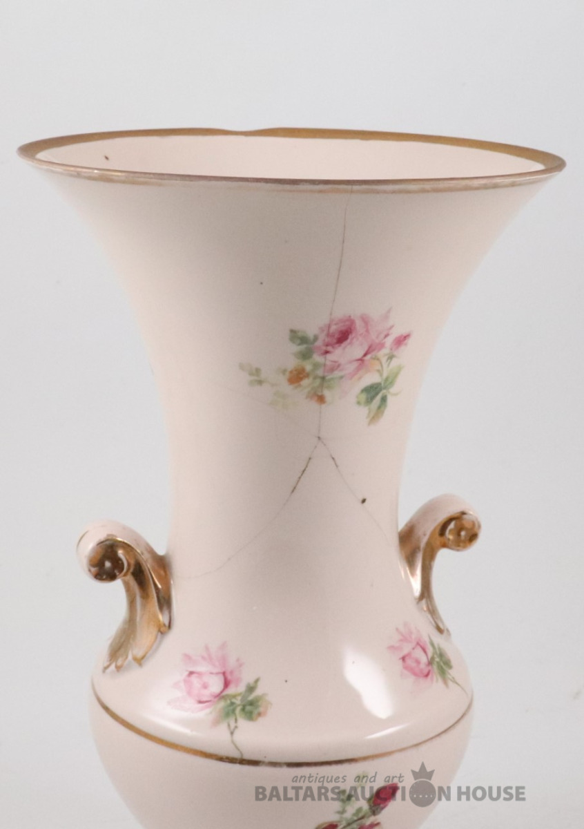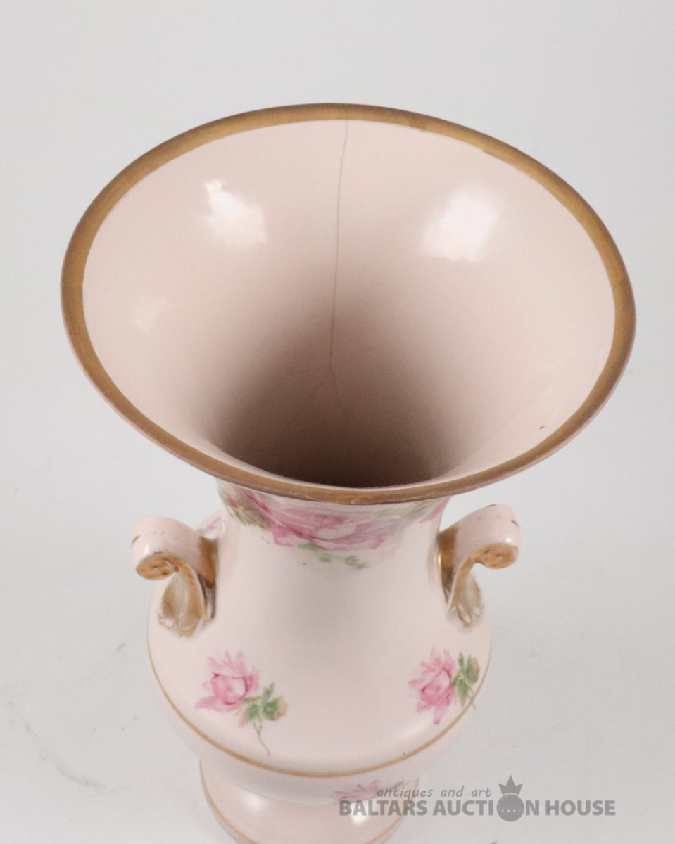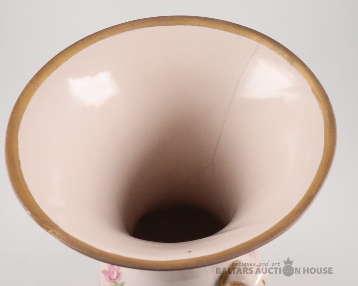 Vāze. Porcelāns, rozā masa, dekols. Kuzņecova fabrika P.B., h=29,7 cm. Plaisas skatīt foto!