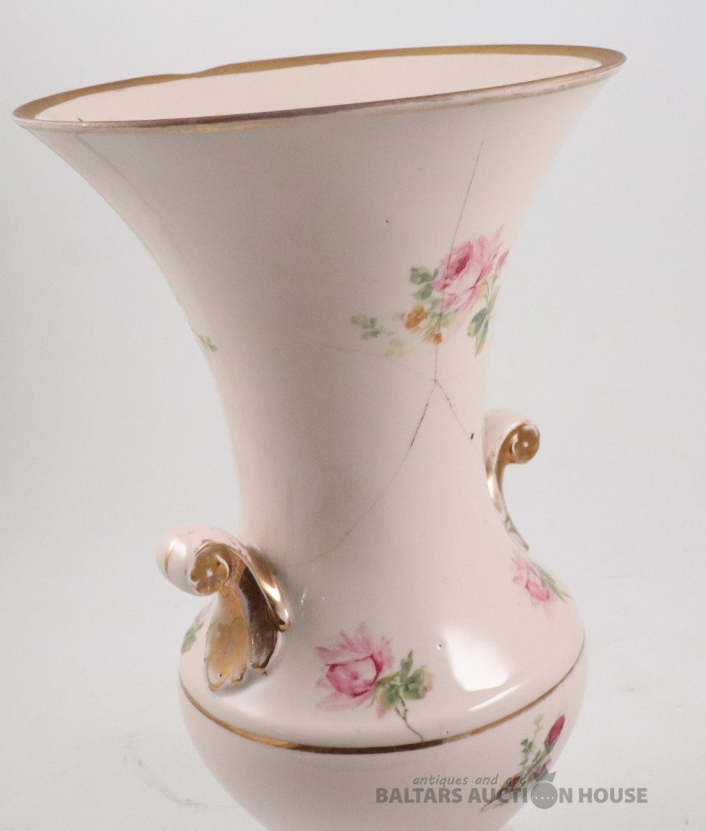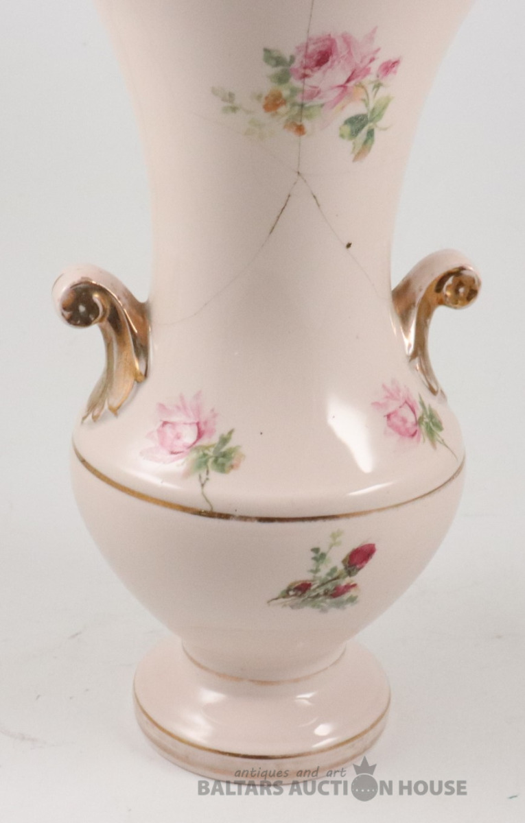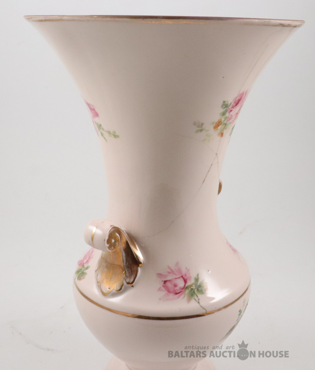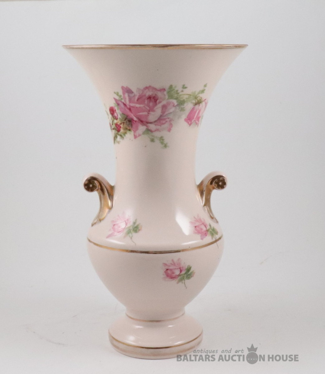 Vāze. Porcelāns, rozā masa, dekols. Kuzņecova fabrika P.B., h=29,7 cm. Plaisas skatīt foto!