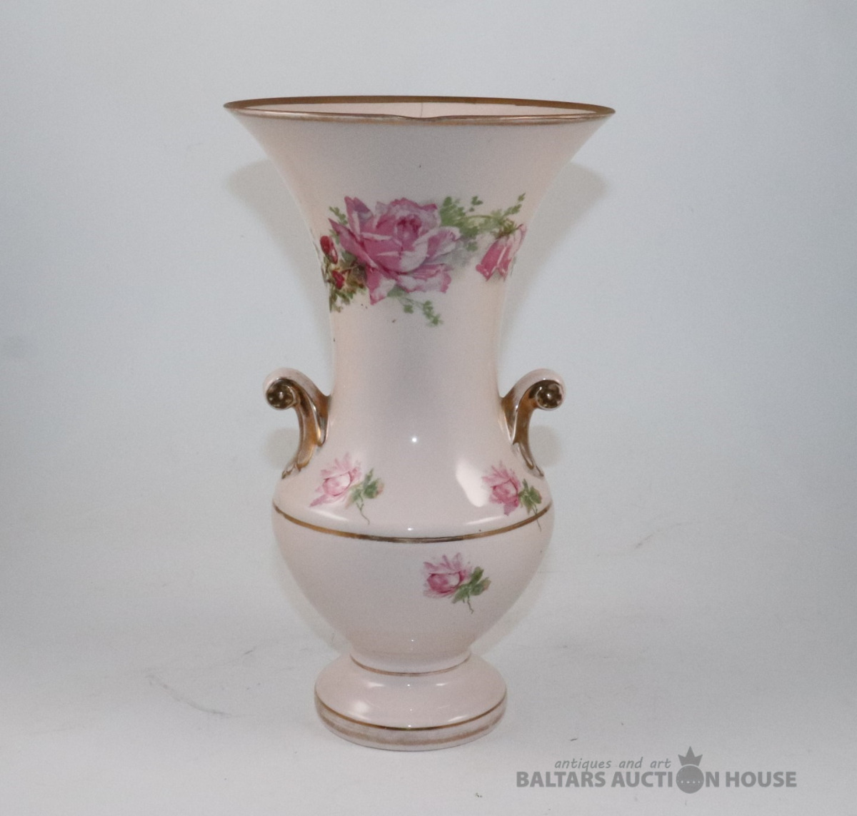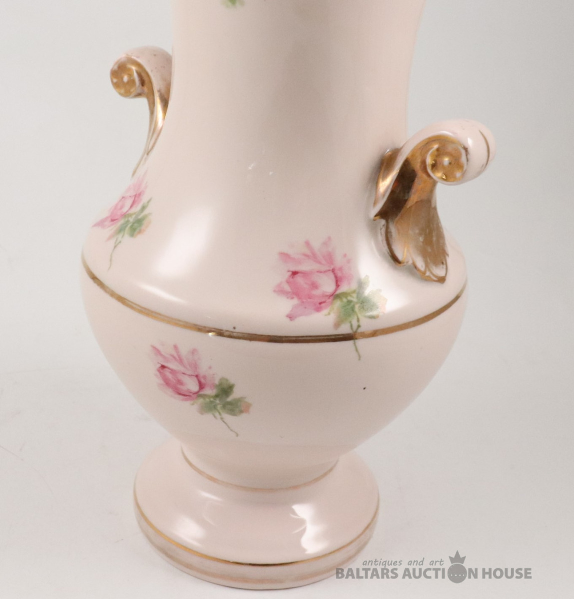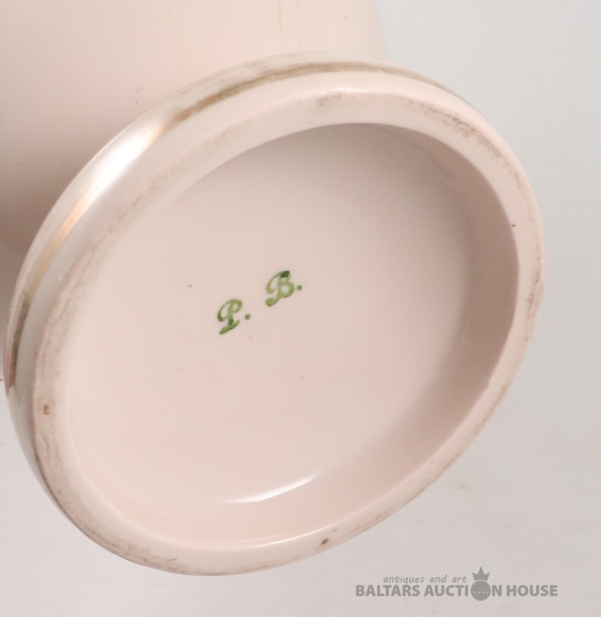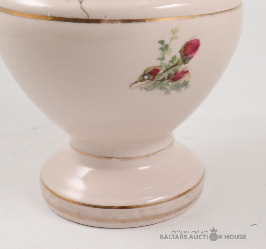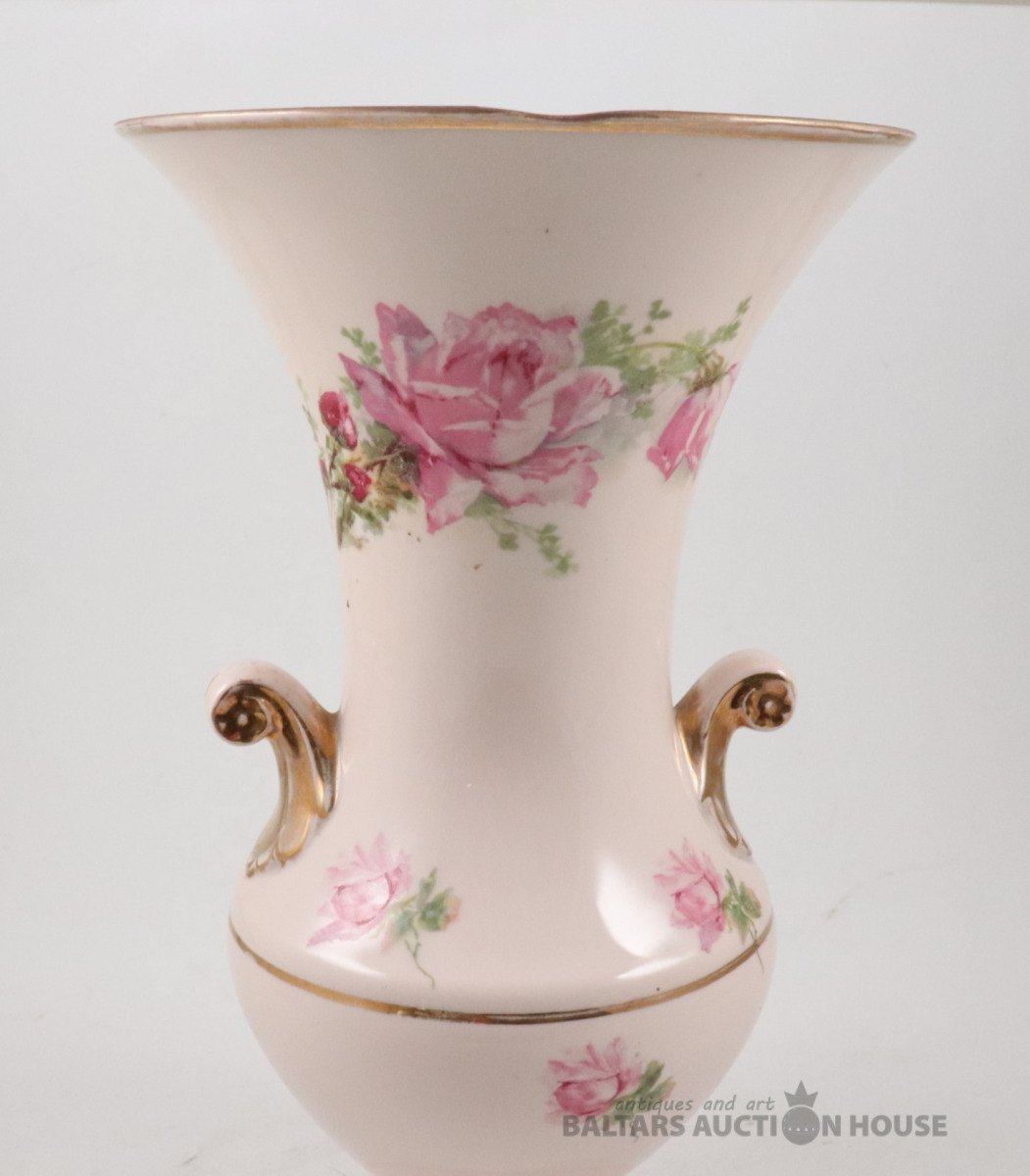Vāze. Porcelāns, rozā masa, dekols. Kuzņecova fabrika P.B., h=29,7 cm. Plaisas skatīt foto!