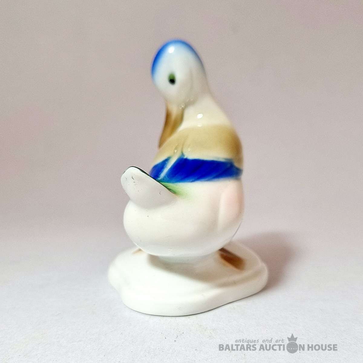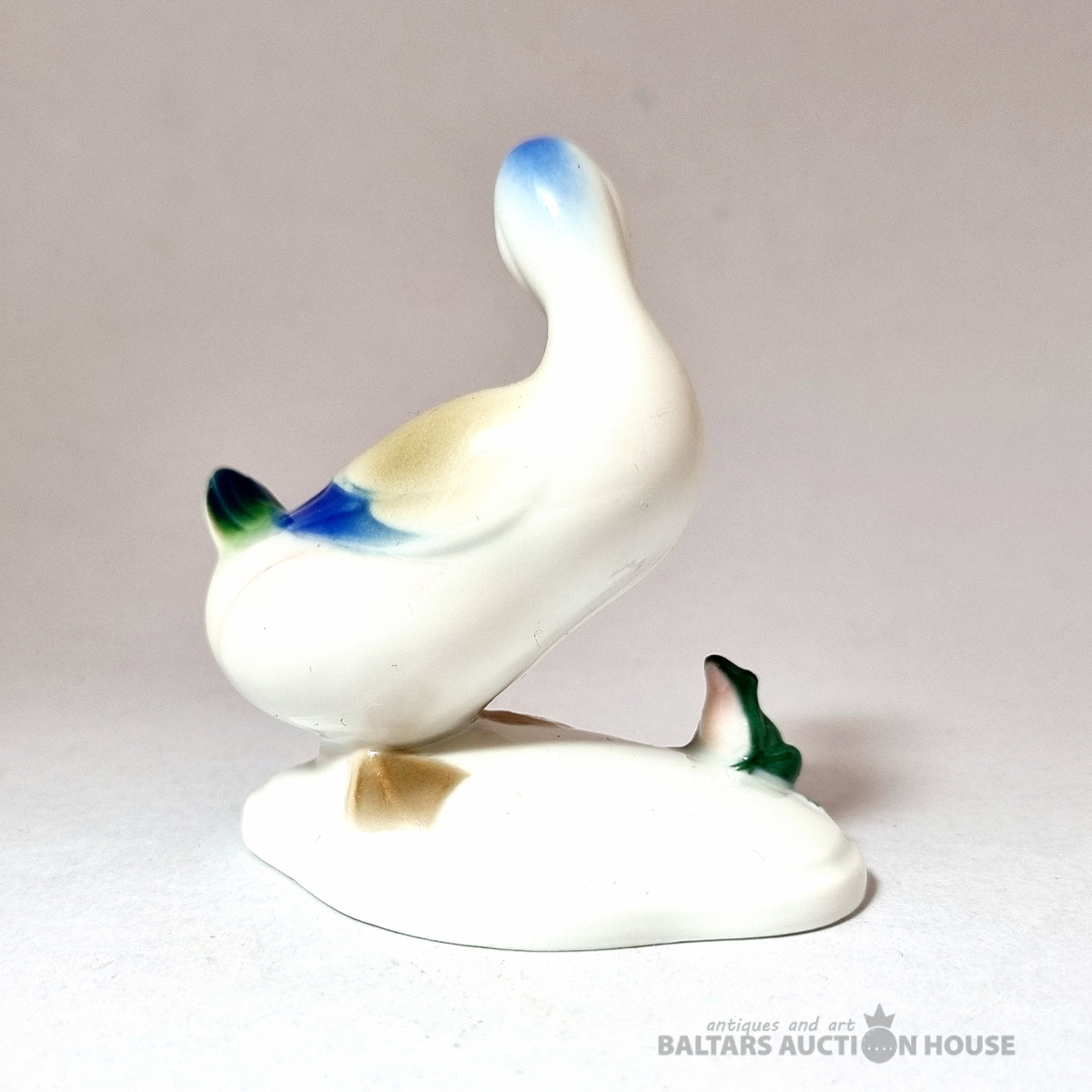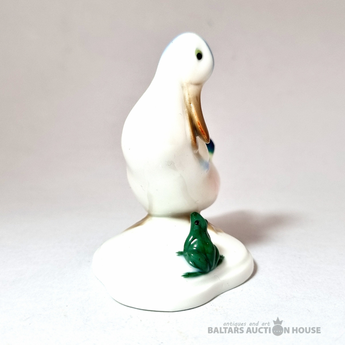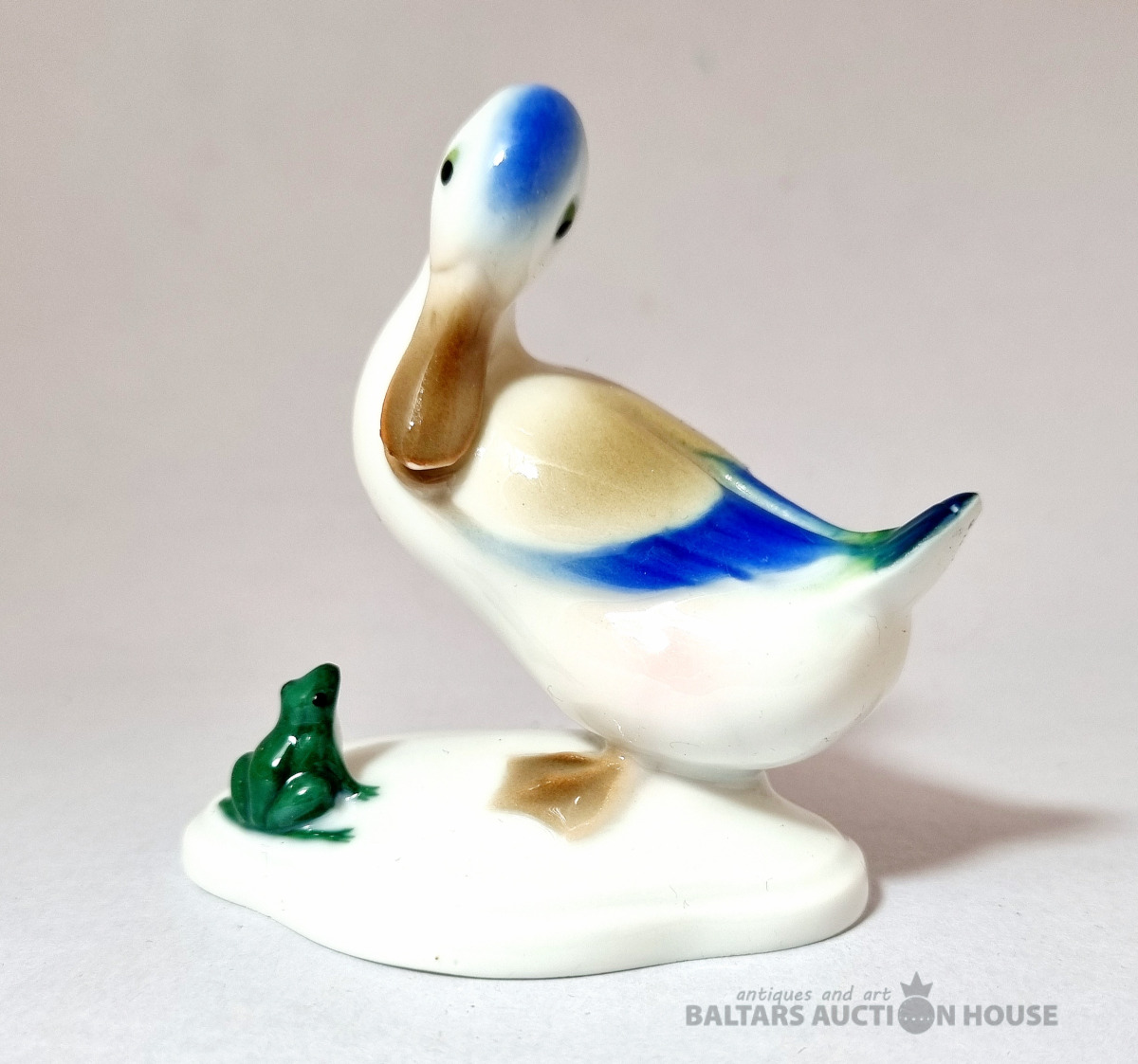 Porcelāna figūriņa "Meža pīle un varde", Metzler & Ortloff, Vācija, vintage. Ražots pirms 1972. gada. Figūriņas stāvoklis ir redzams fotoattēlā. Augstums: 8 cm.