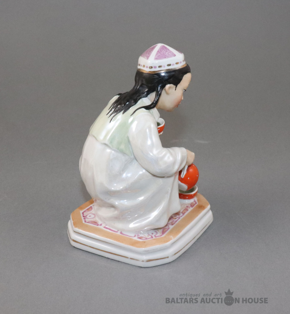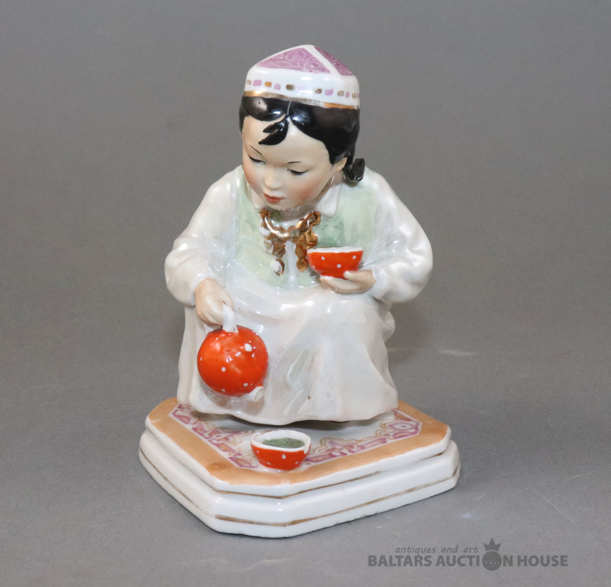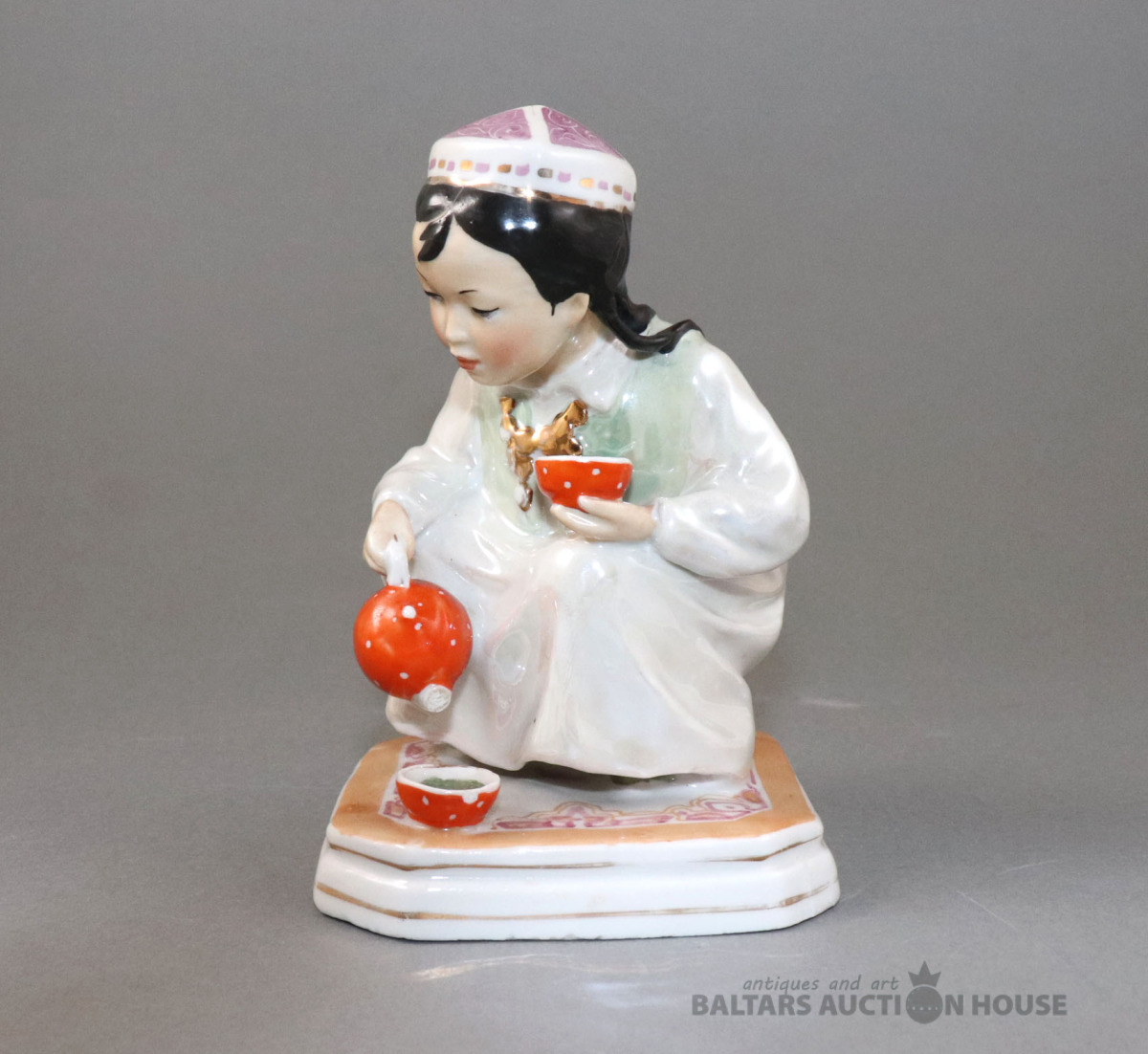 Figūra. TĒJAS DZERŠANA. Ukraina. Porcelāns. H=14 cm. Nolūzis tējkannai snīpis!