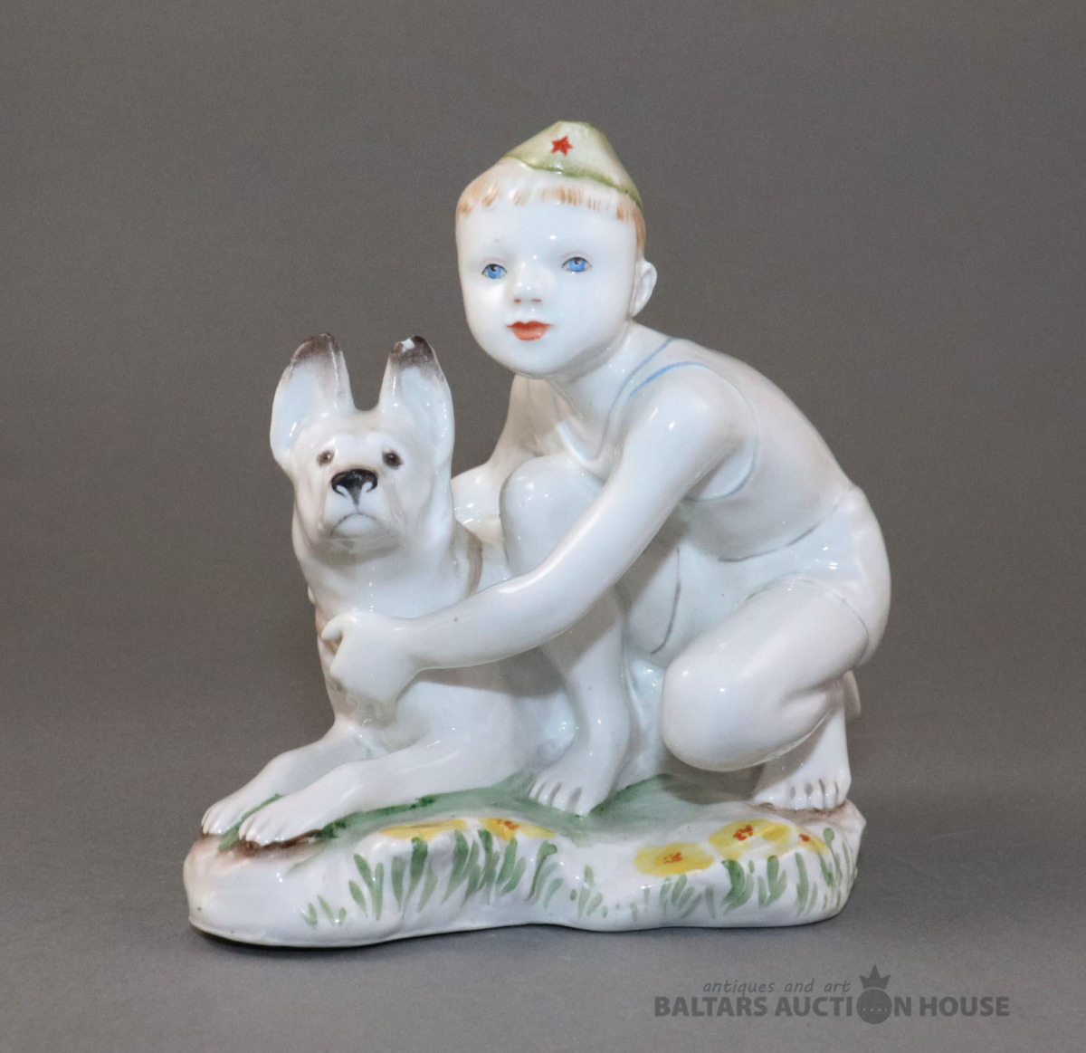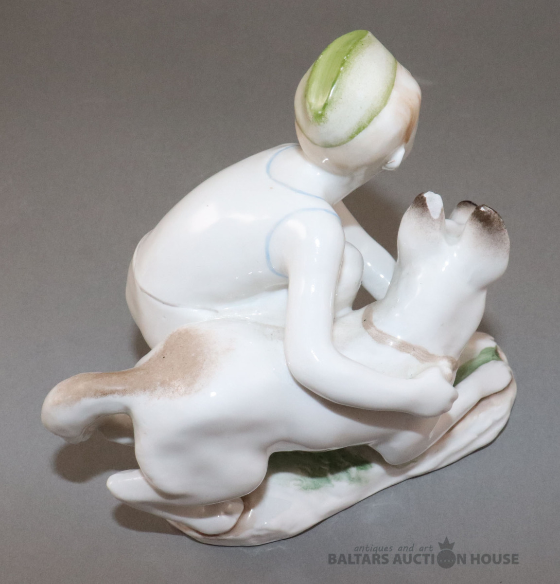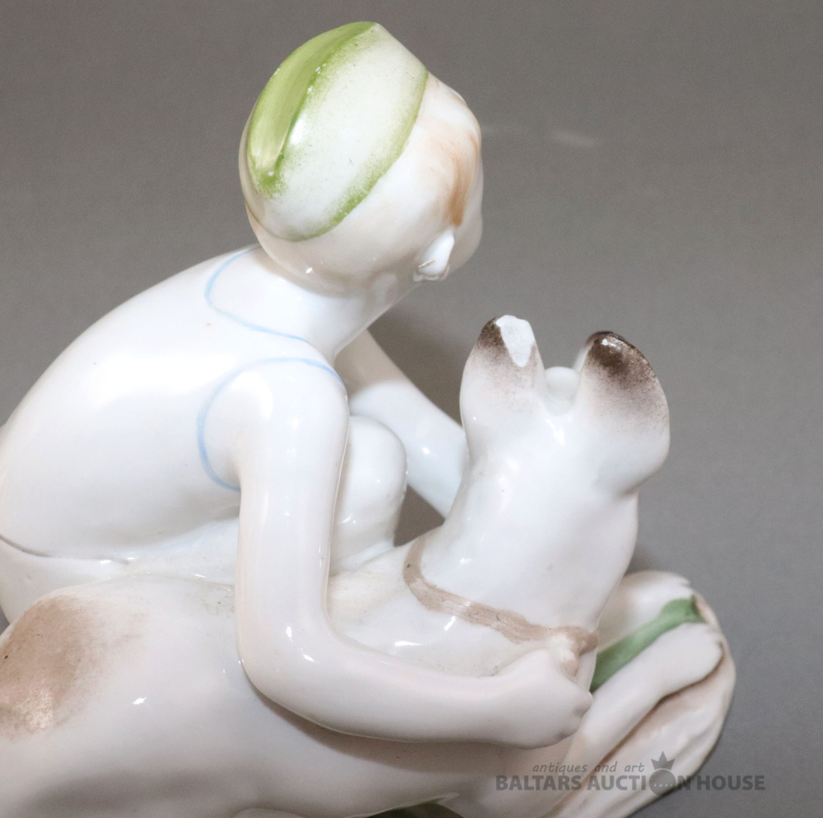 Figūra. PUISIS AR SUNI. LFZ. Porcelāns. H=13 cm Sunim nošķēlums uz auss!