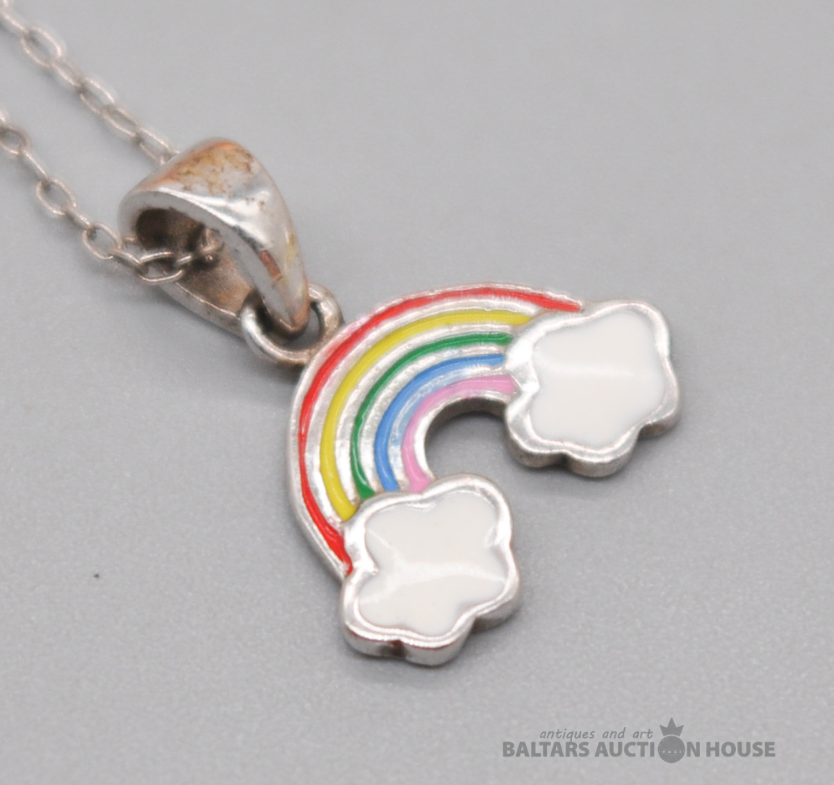 Smalka ķēdīte ar piekariņu. Sudrabs/Emalja. Svars 1.2 grami. Garums 40 cm.
