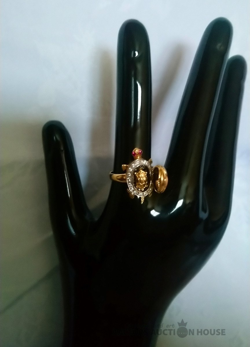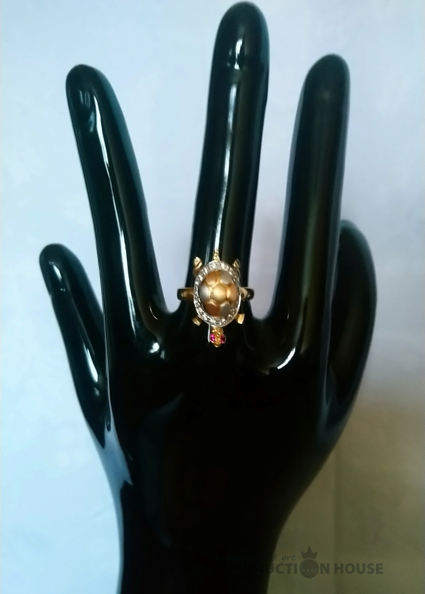 Zelta gredzens. Bruņurupucis atvērās, iekšā maziņš bruņurupucis. Zelts 585° Izm. 18.5.