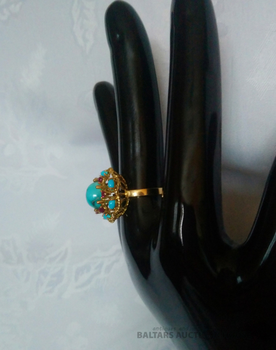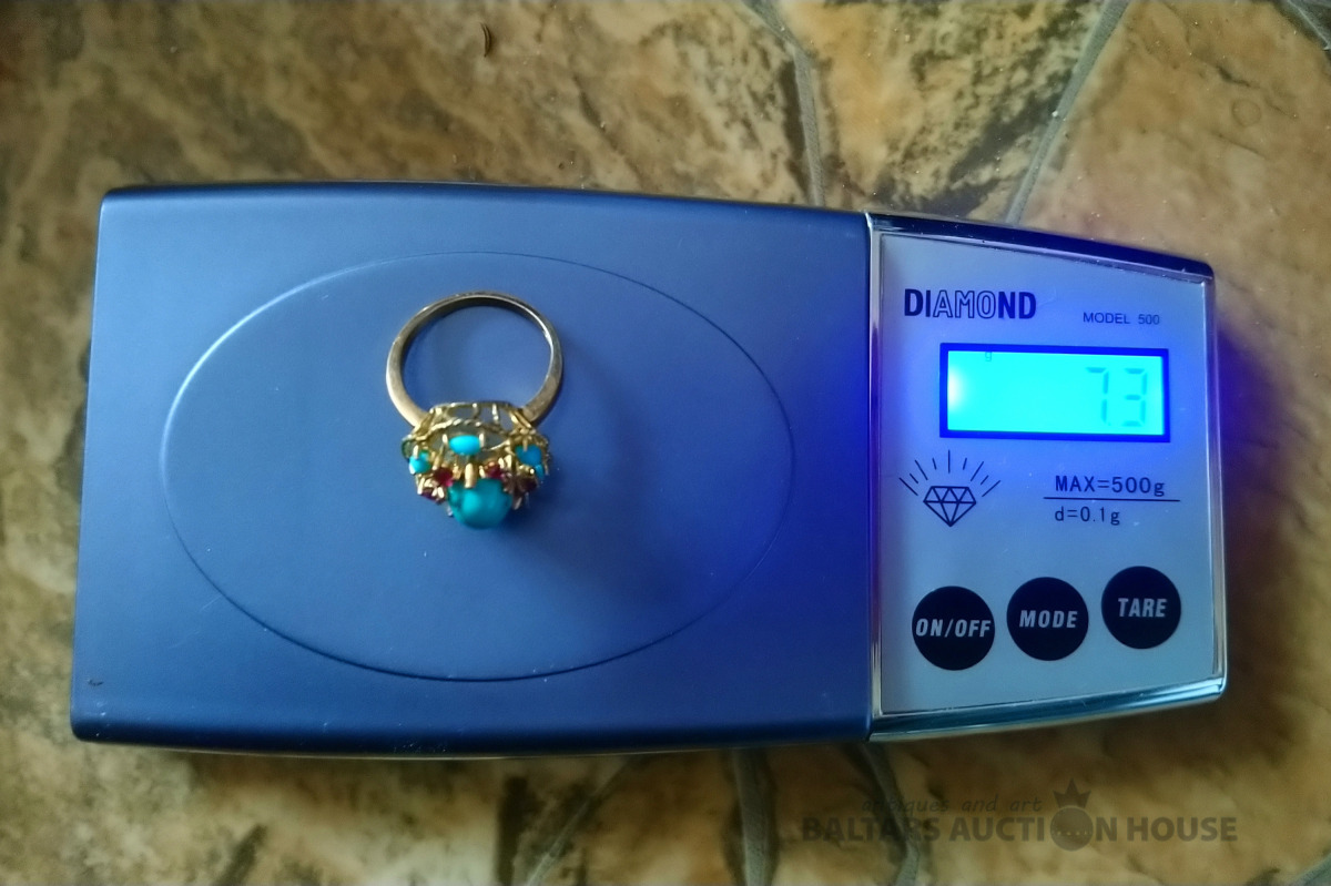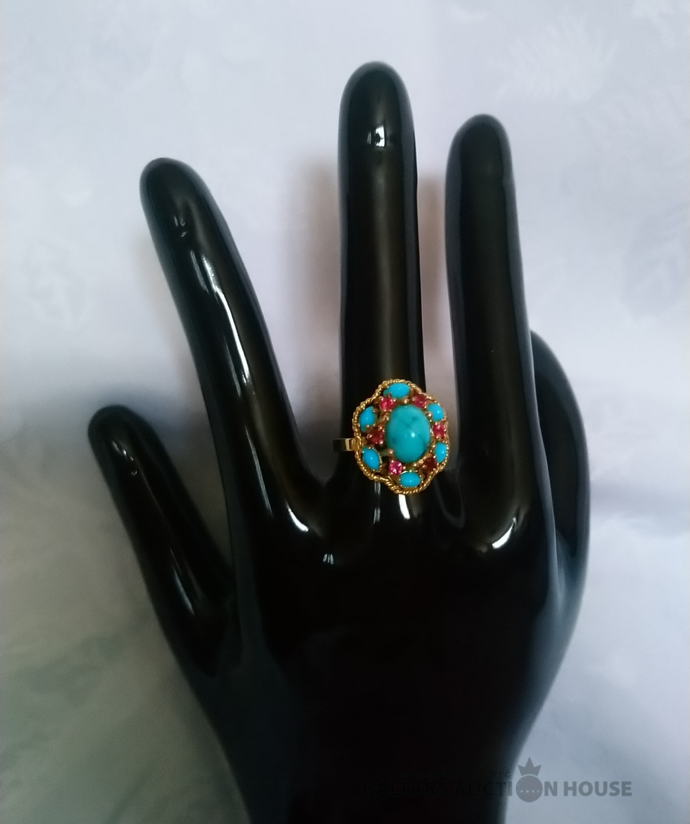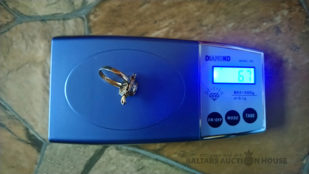 Zelta gredzens. 18K zelts. Eiropa. Dabīgi akmeņi. Izm. 19.