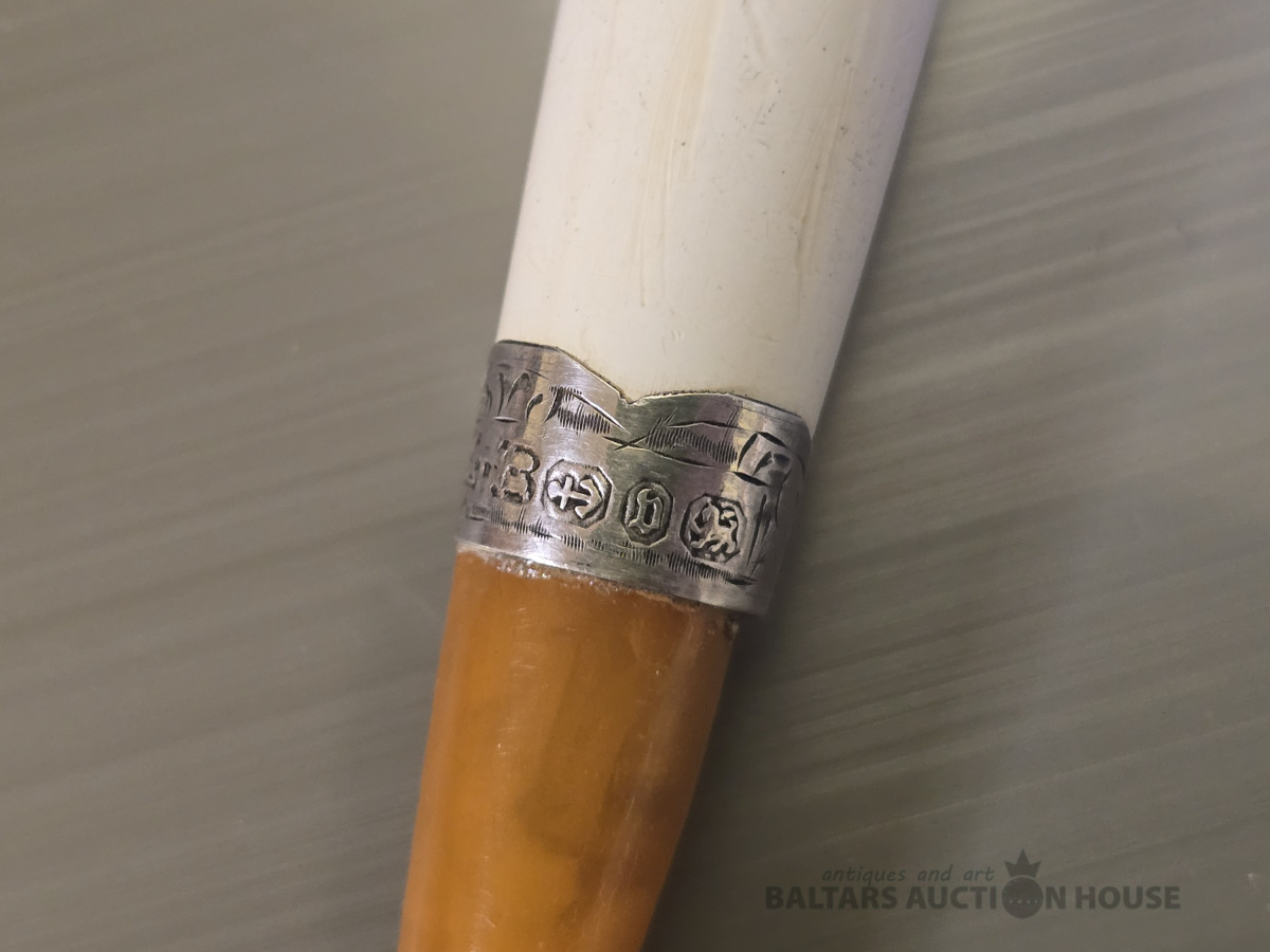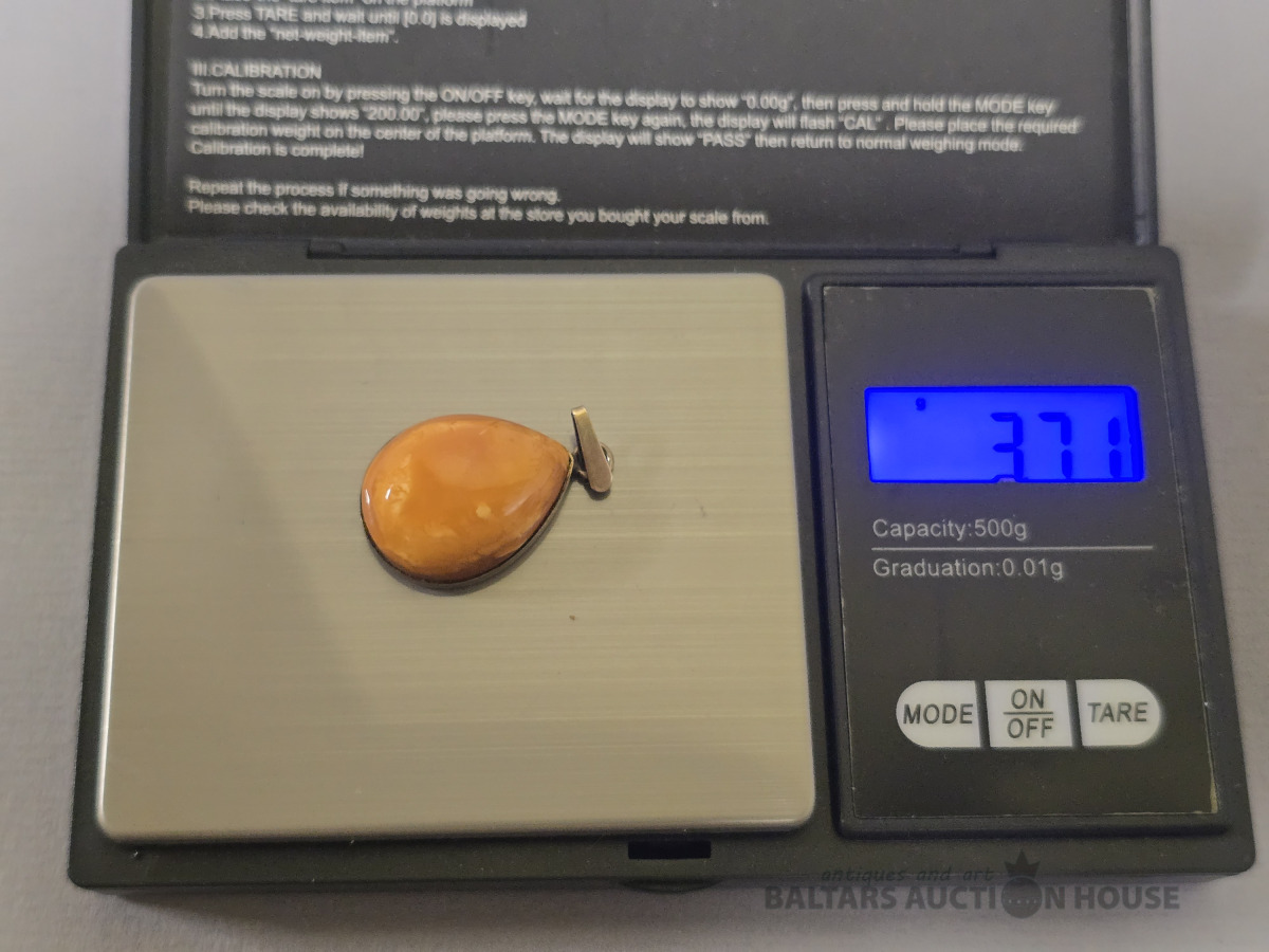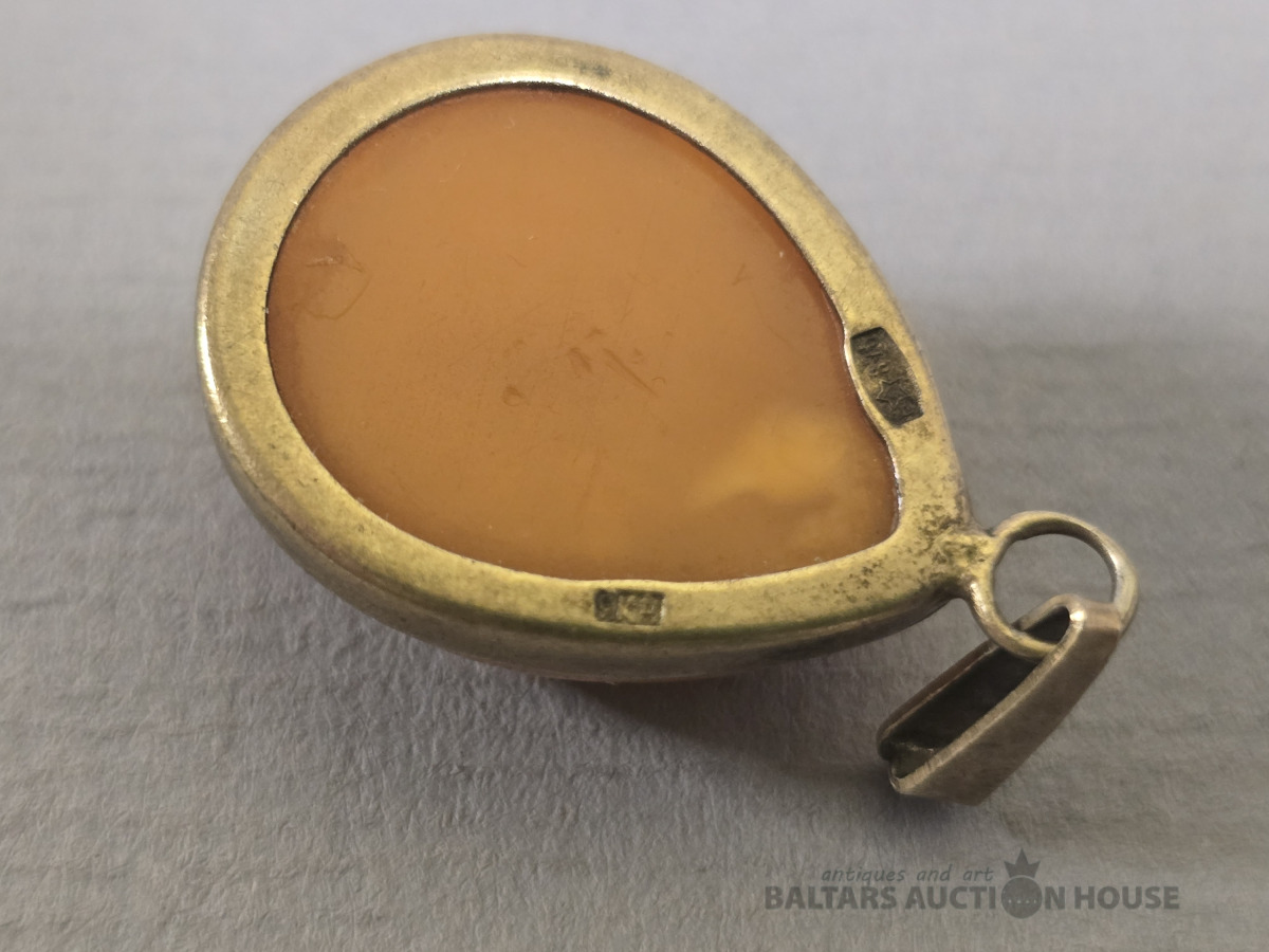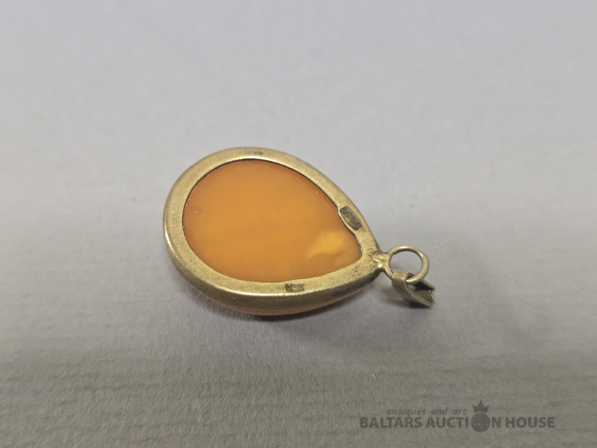 Dzintara kulons sudrabā 875 prove. Svars 3.71 gr.