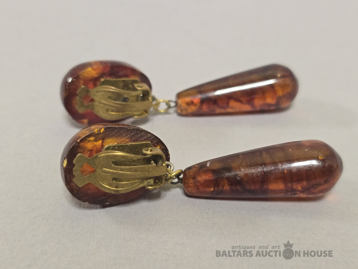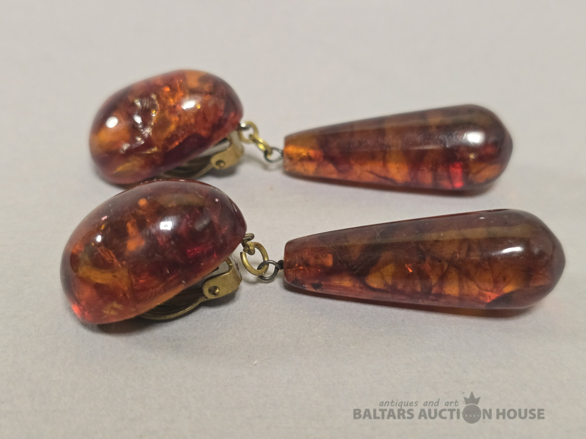 Dzintara klipši.Svars 13.86 gr.Garums 6 cm.