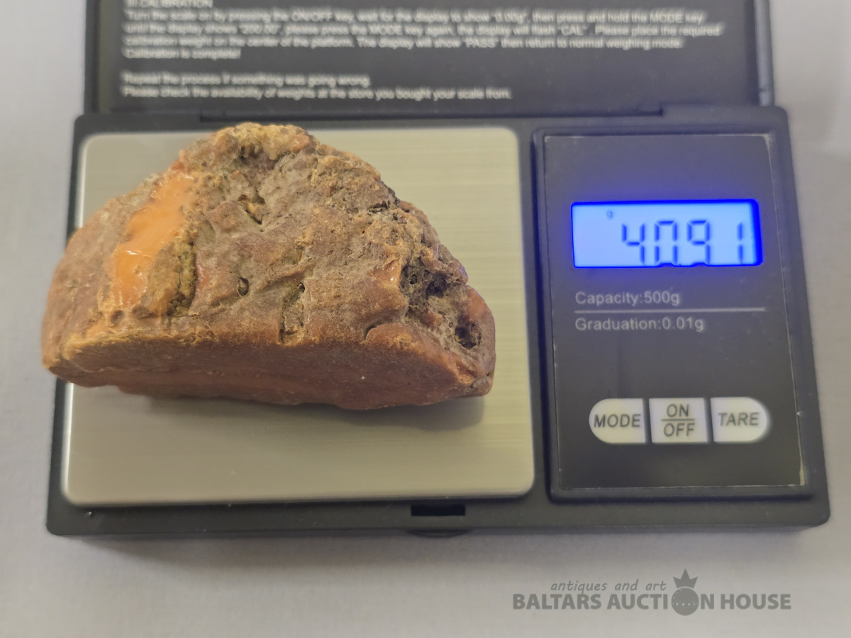 Neapstradāts Baltijas dzintars atrasts Liepājas jūrmala.Svars 40.91 gr .