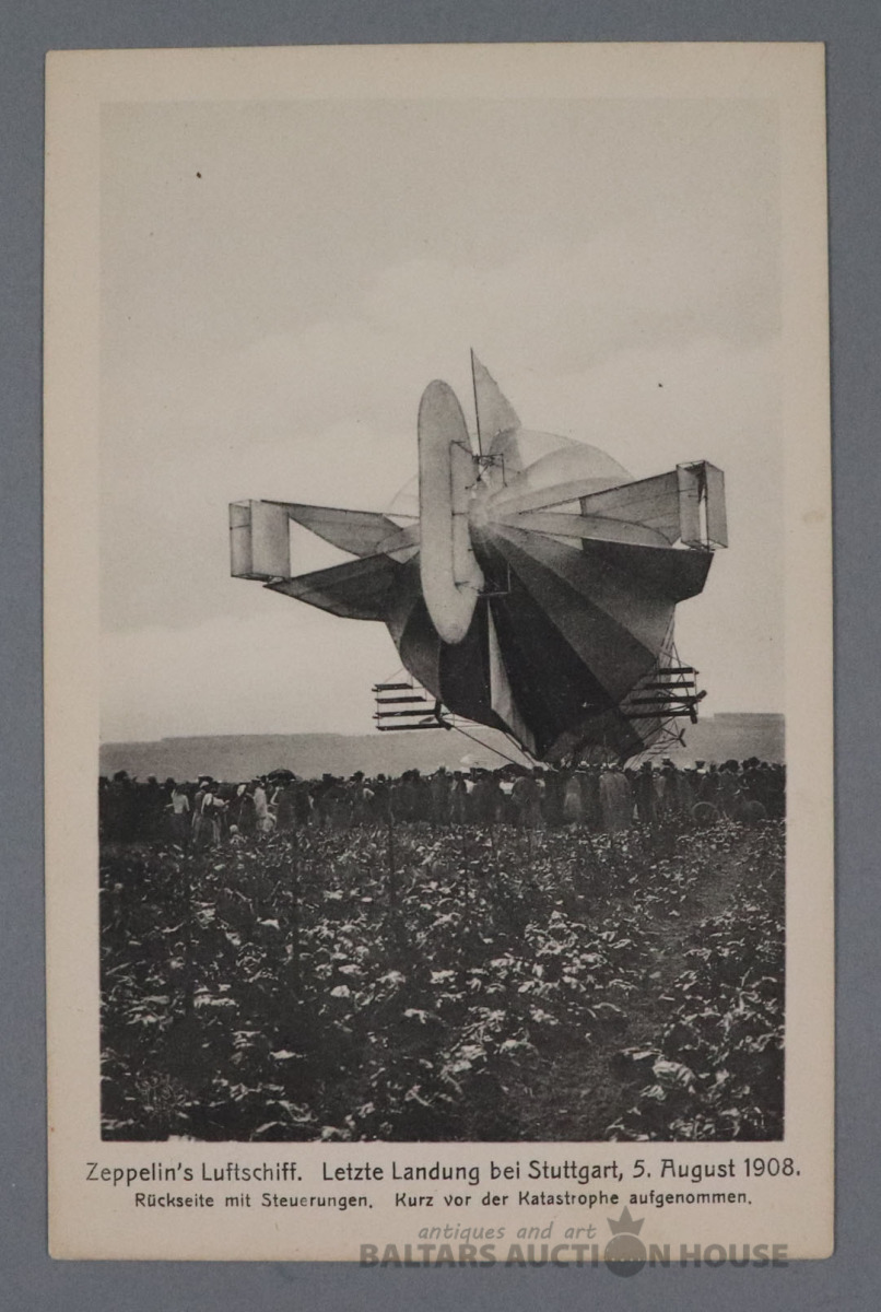 PASTKARTE. CEPELĪNA PĒDĒJĀ NOSĒŠANĀS pie ŠTUTGARTES 5.augustā 1908.g., neilgi pirms šī cepelīna katastrofas
