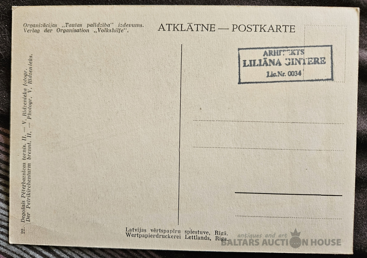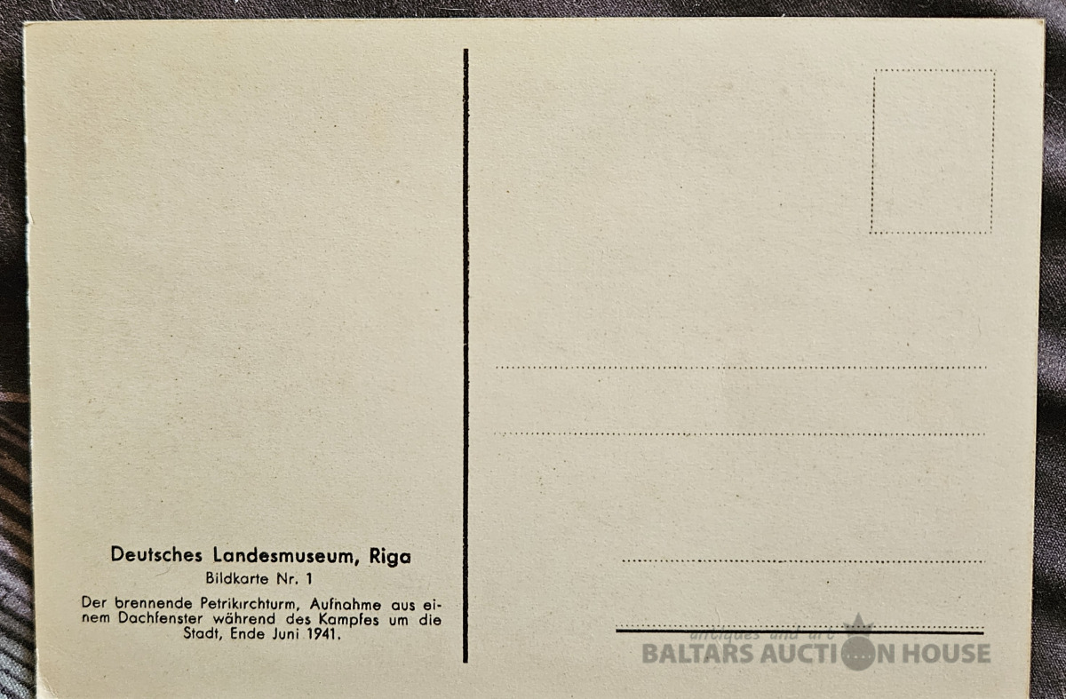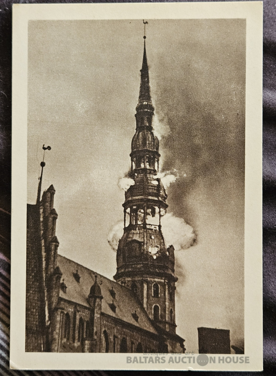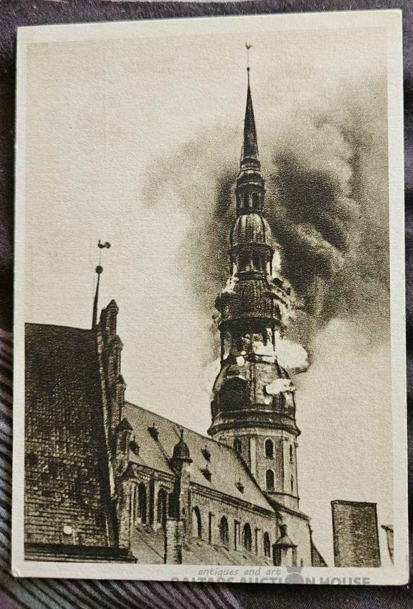 Pastkarte. Degošais Pēterbaznīcas tornis.