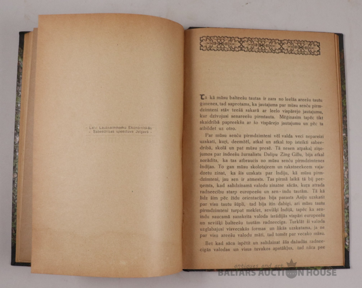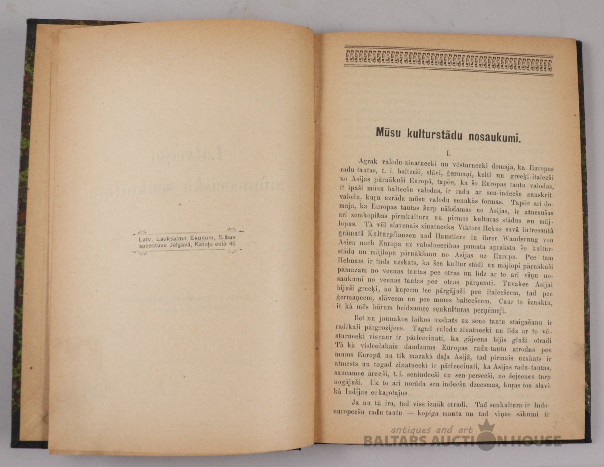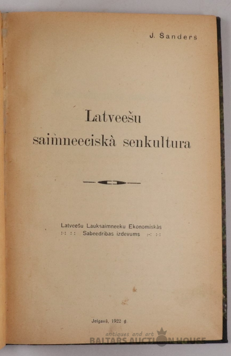 LATVIEŠU SAIMNIECISKĀ SENKULTŪRA. Jelgavā, 1922. g.