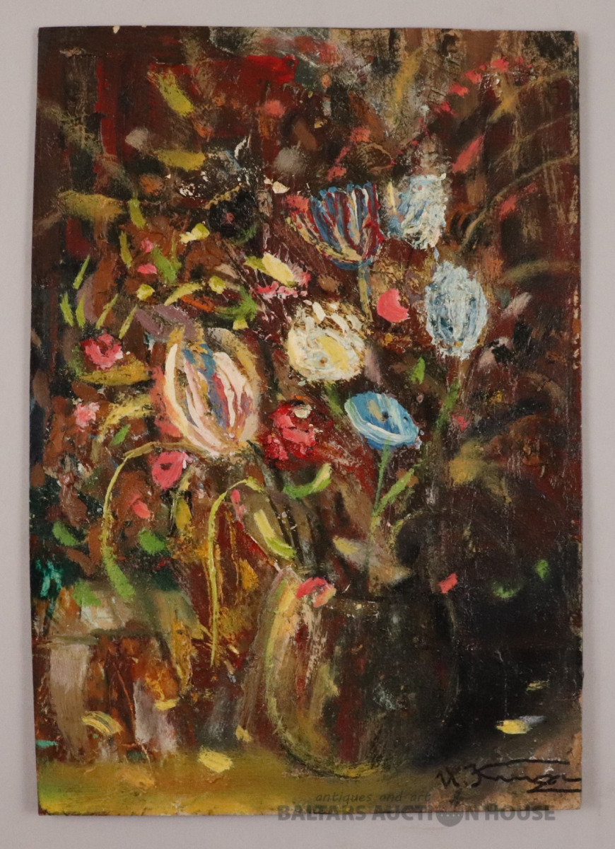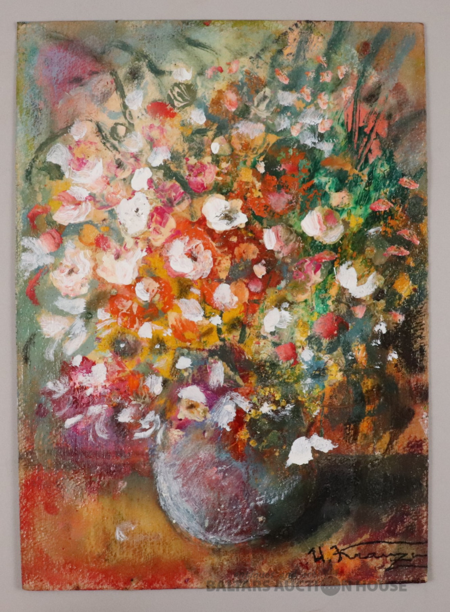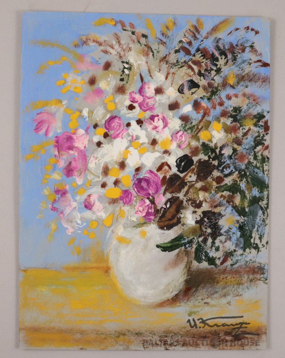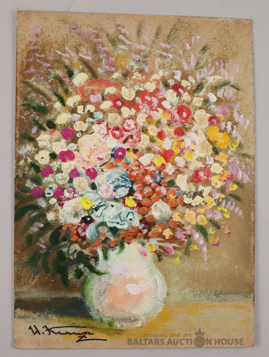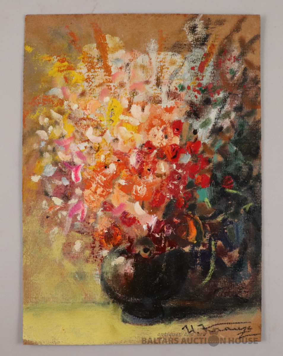 Uldis Krauze (1958). ZIEDI MARMORA VĀZĒ. Kartons, jaukta tehnika. 32x23 cm