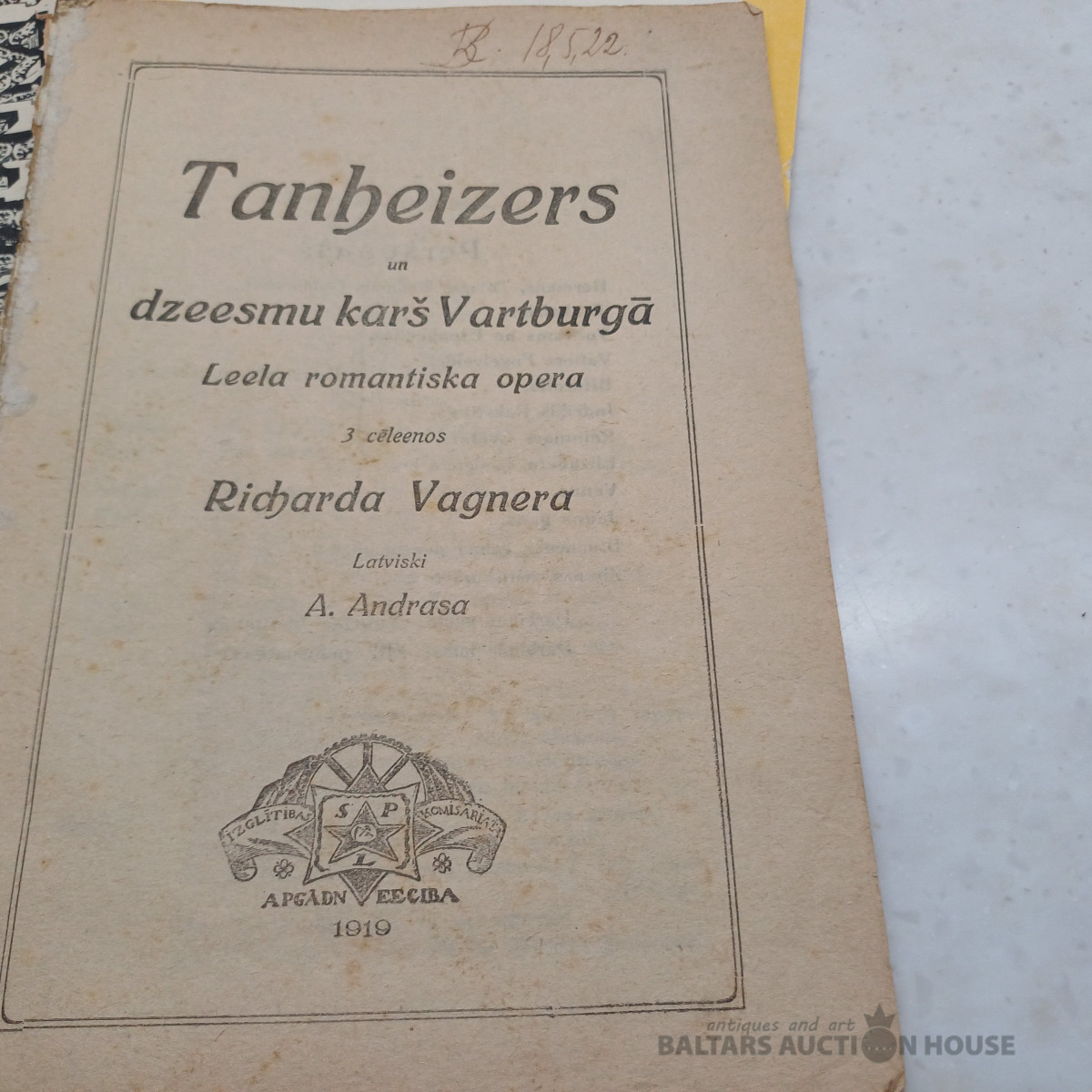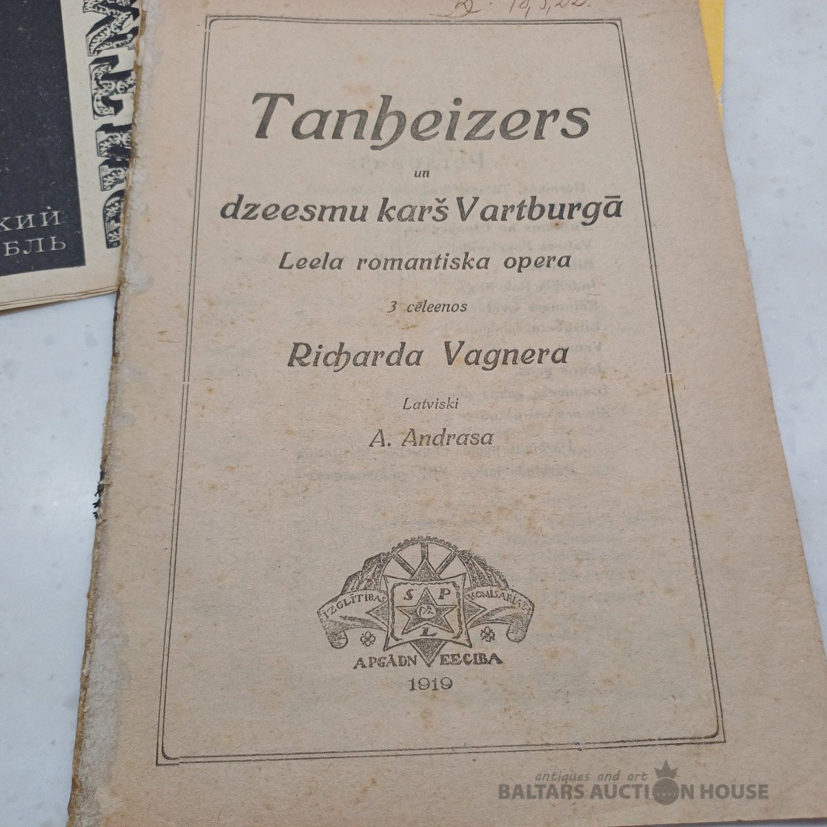 Teātris. Arī reta Tanheizers 1919. gada okupācijas laika. Ar izdevniecības SPL apgādniecība zīmi titulā.