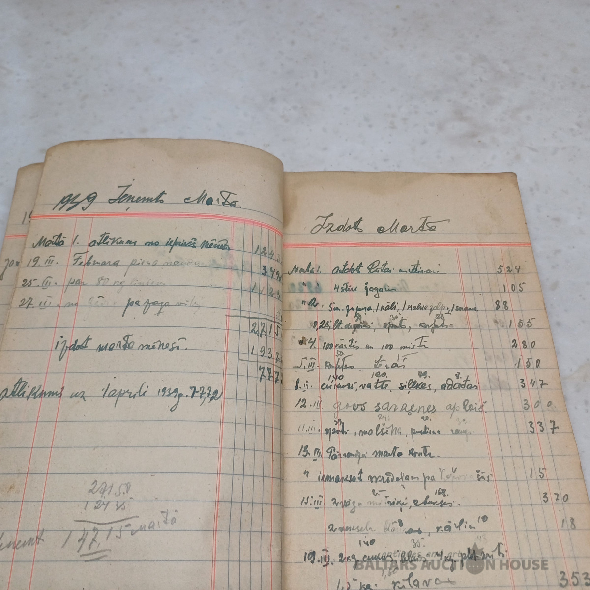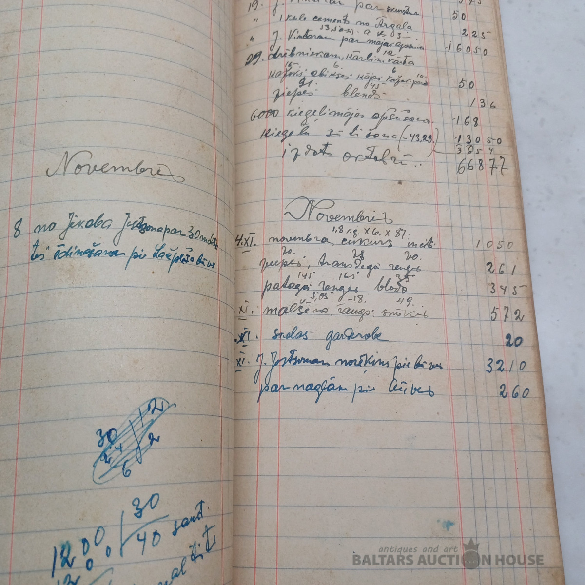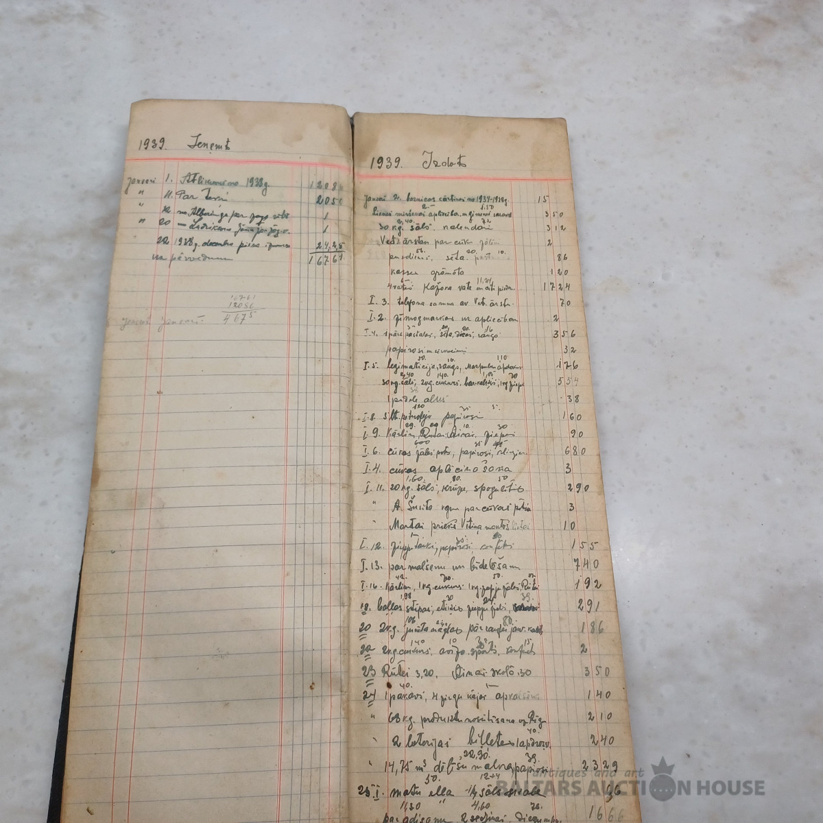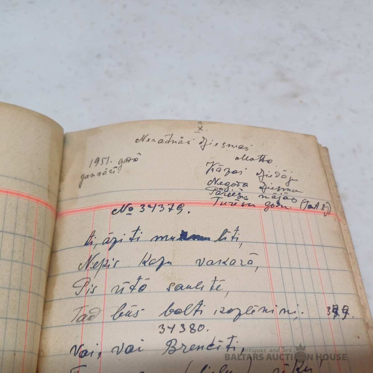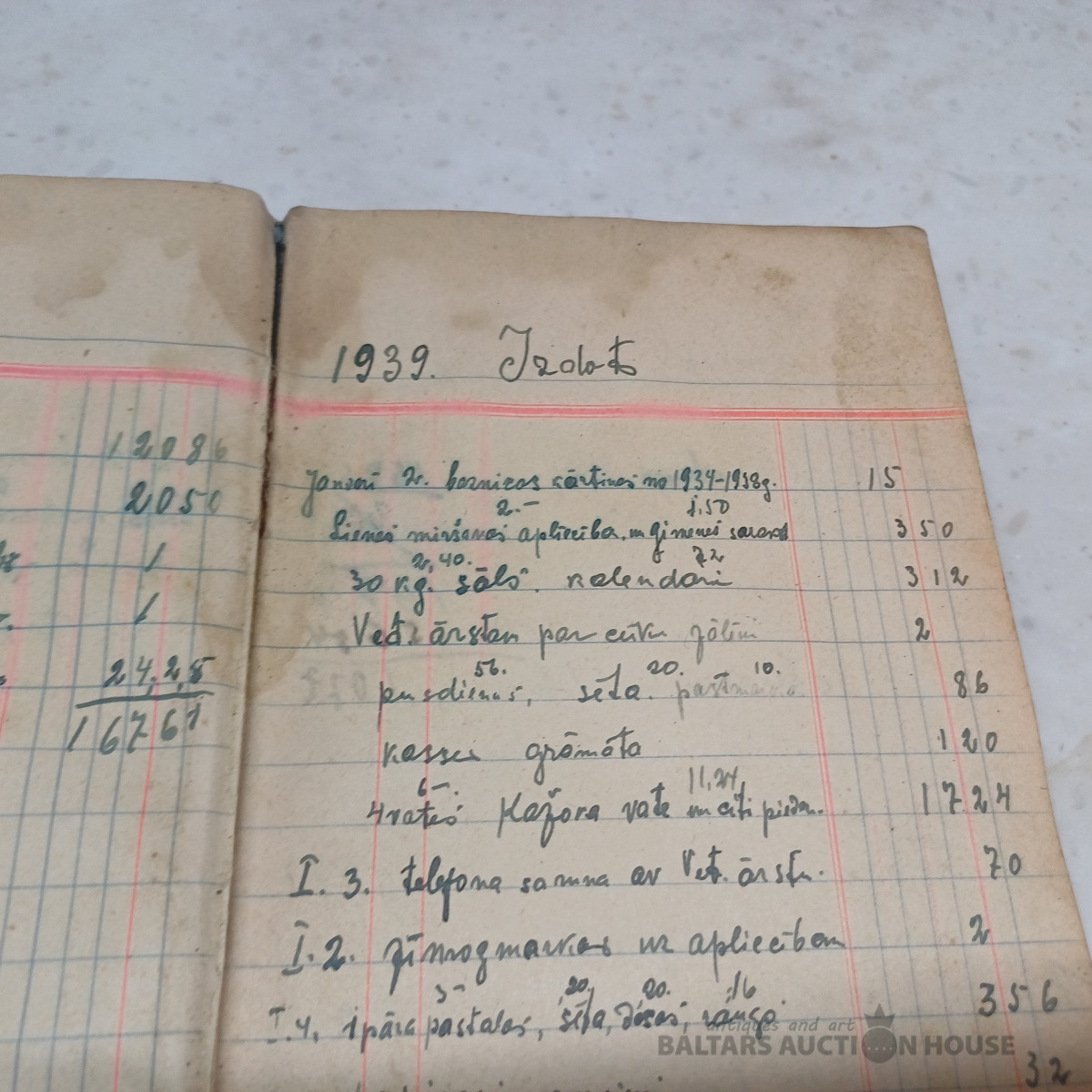 Saimniecības ieņēmumu–izdevumu mājas grāmata par periodu no 1939. g. janv. līdz 1940. g. okt. + sākot no 1951. g. papildināta ar nerātnajām dziesmām uz 100 lpp. (skatīt bildēs)