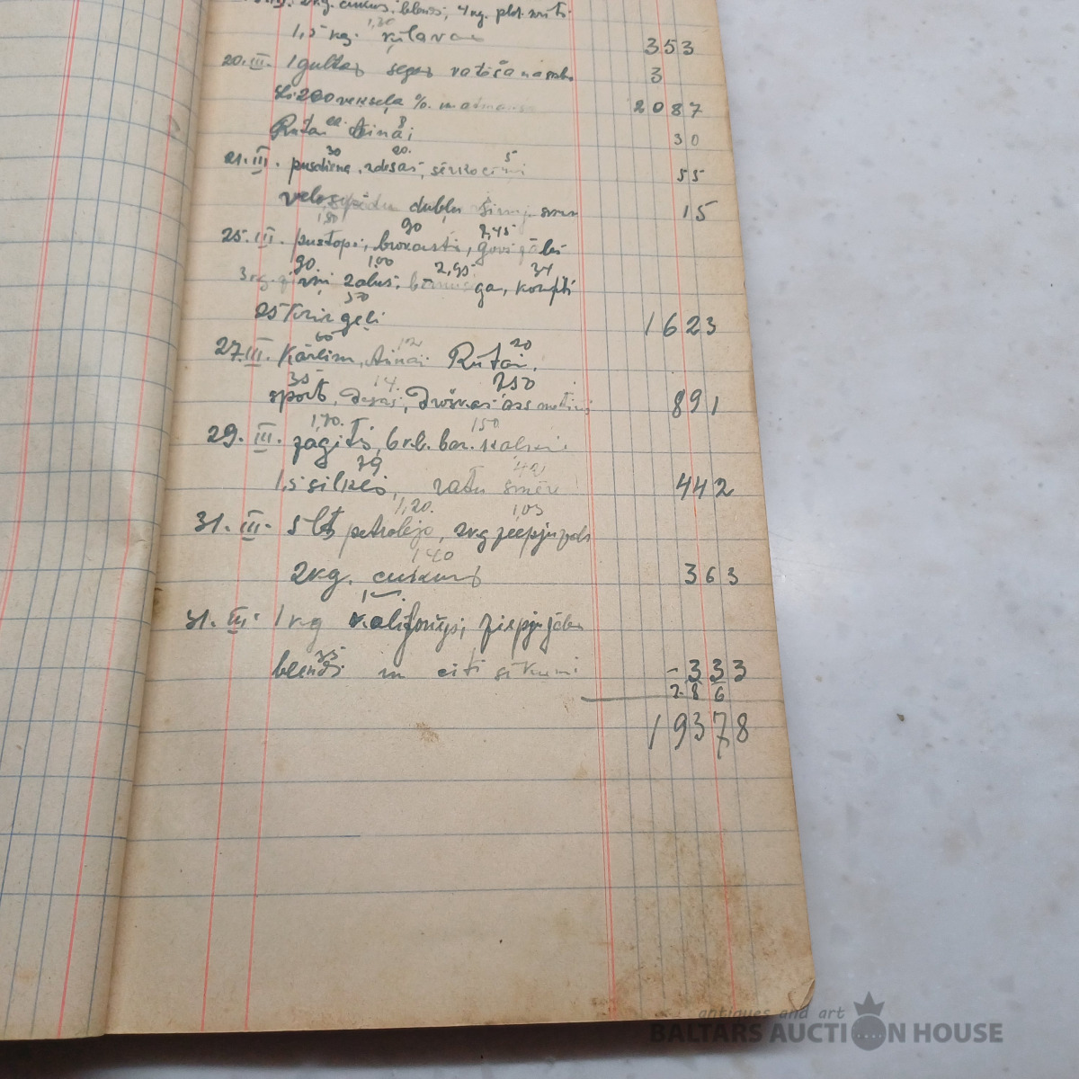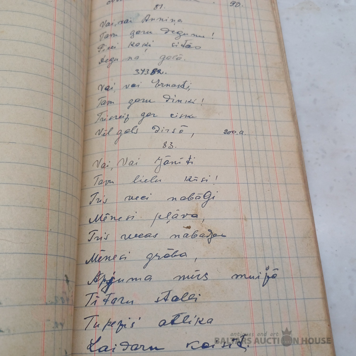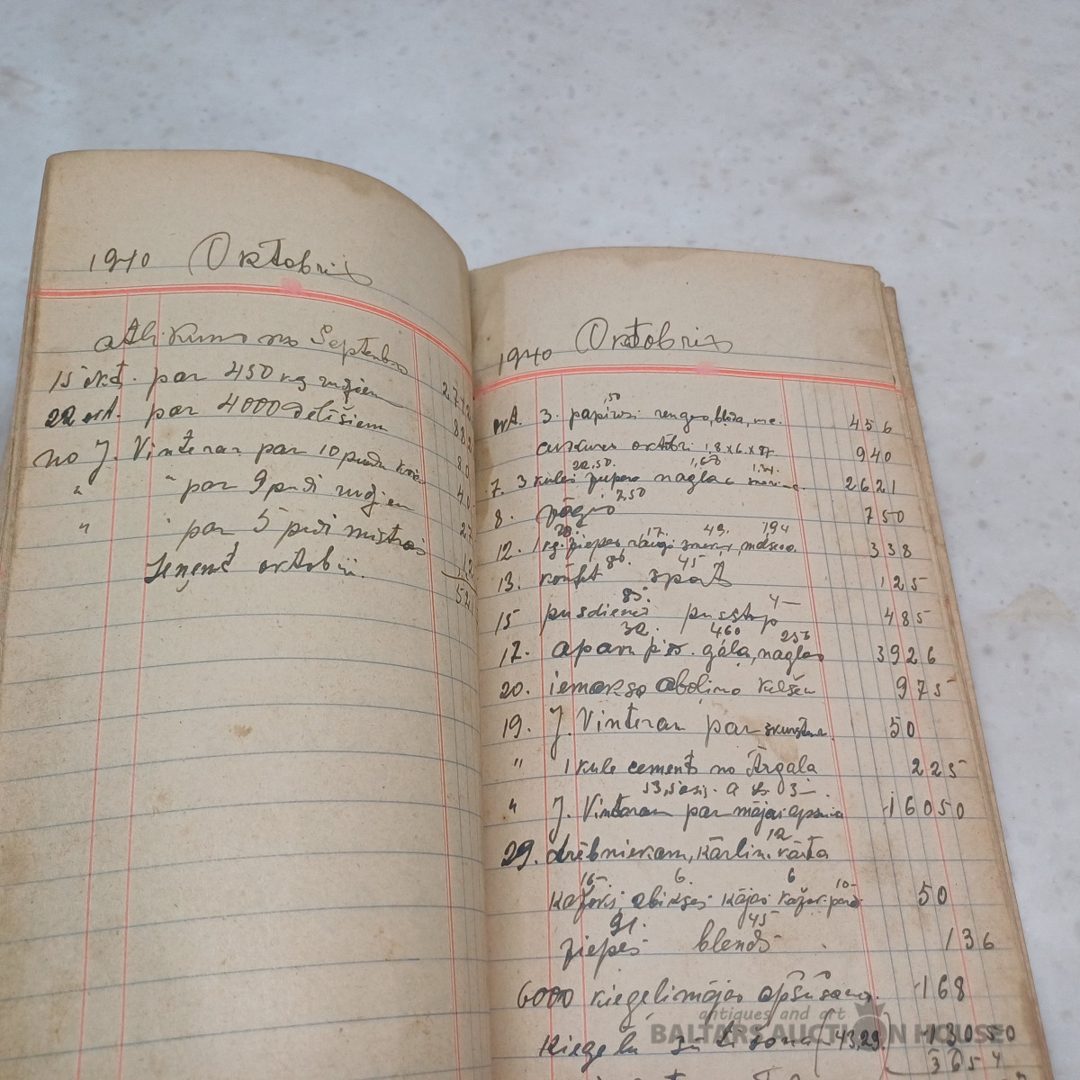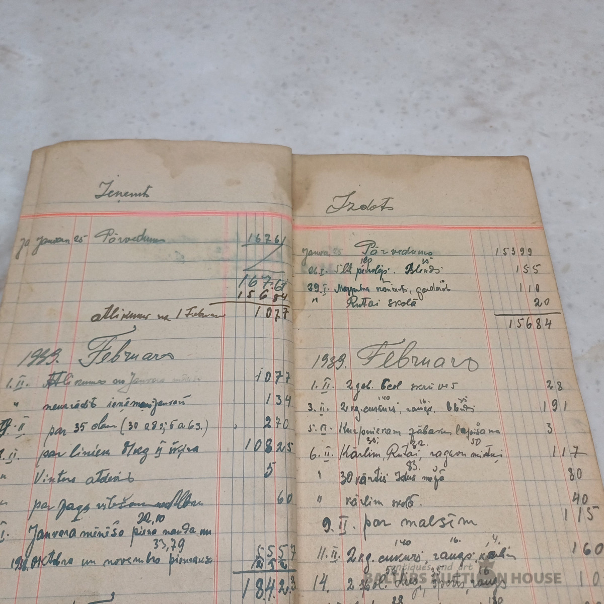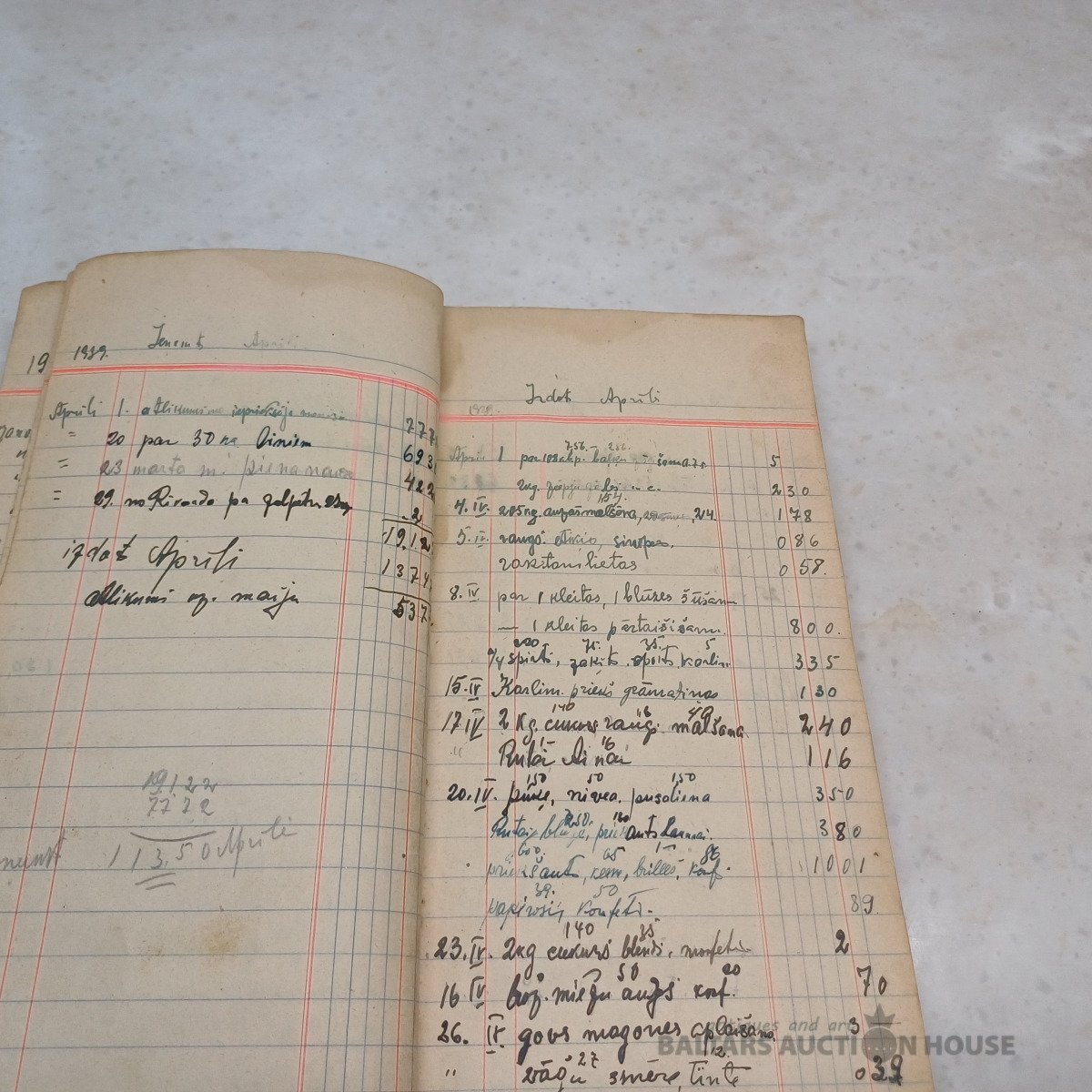 Saimniecības ieņēmumu–izdevumu mājas grāmata par periodu no 1939. g. janv. līdz 1940. g. okt. + sākot no 1951. g. papildināta ar nerātnajām dziesmām uz 100 lpp. (skatīt bildēs)