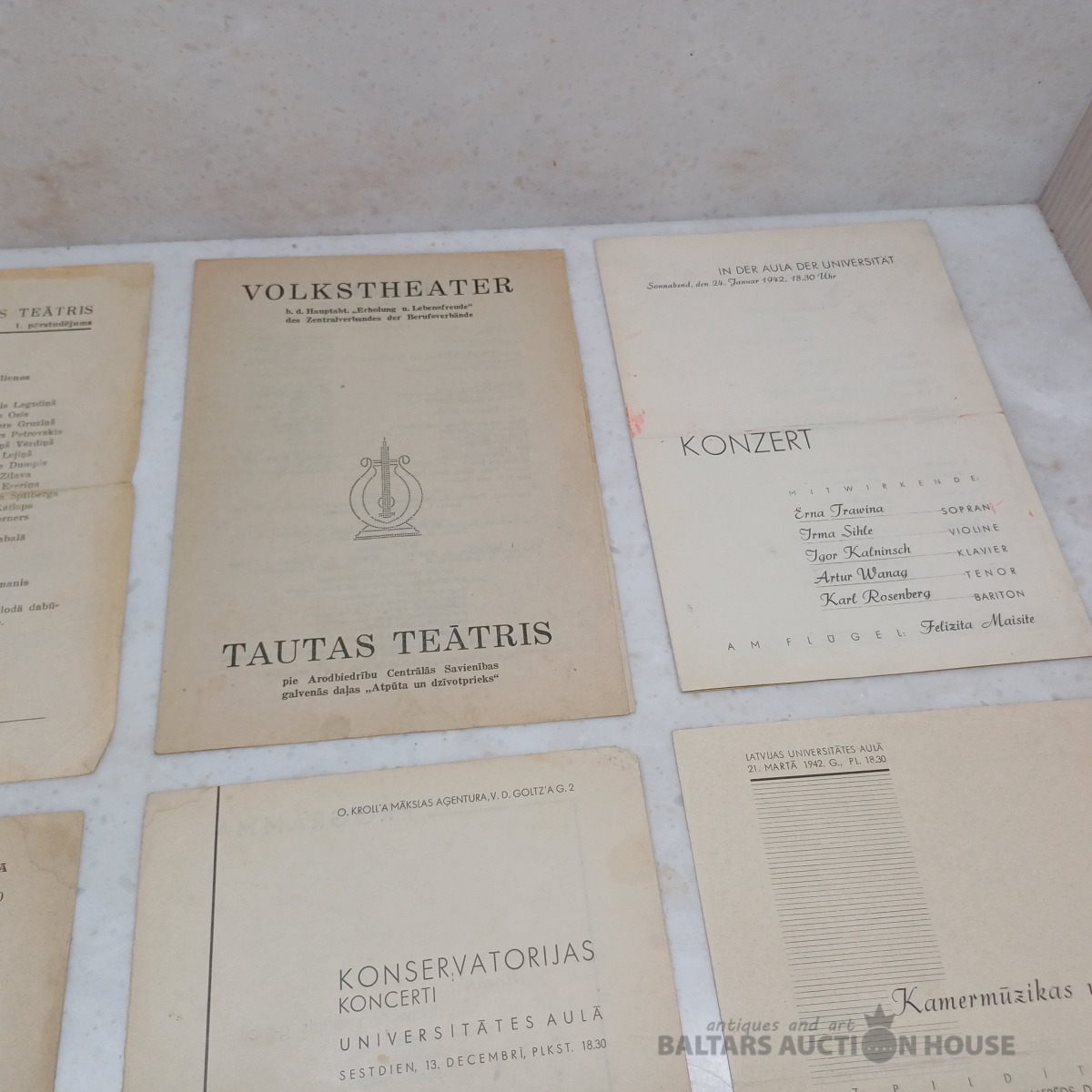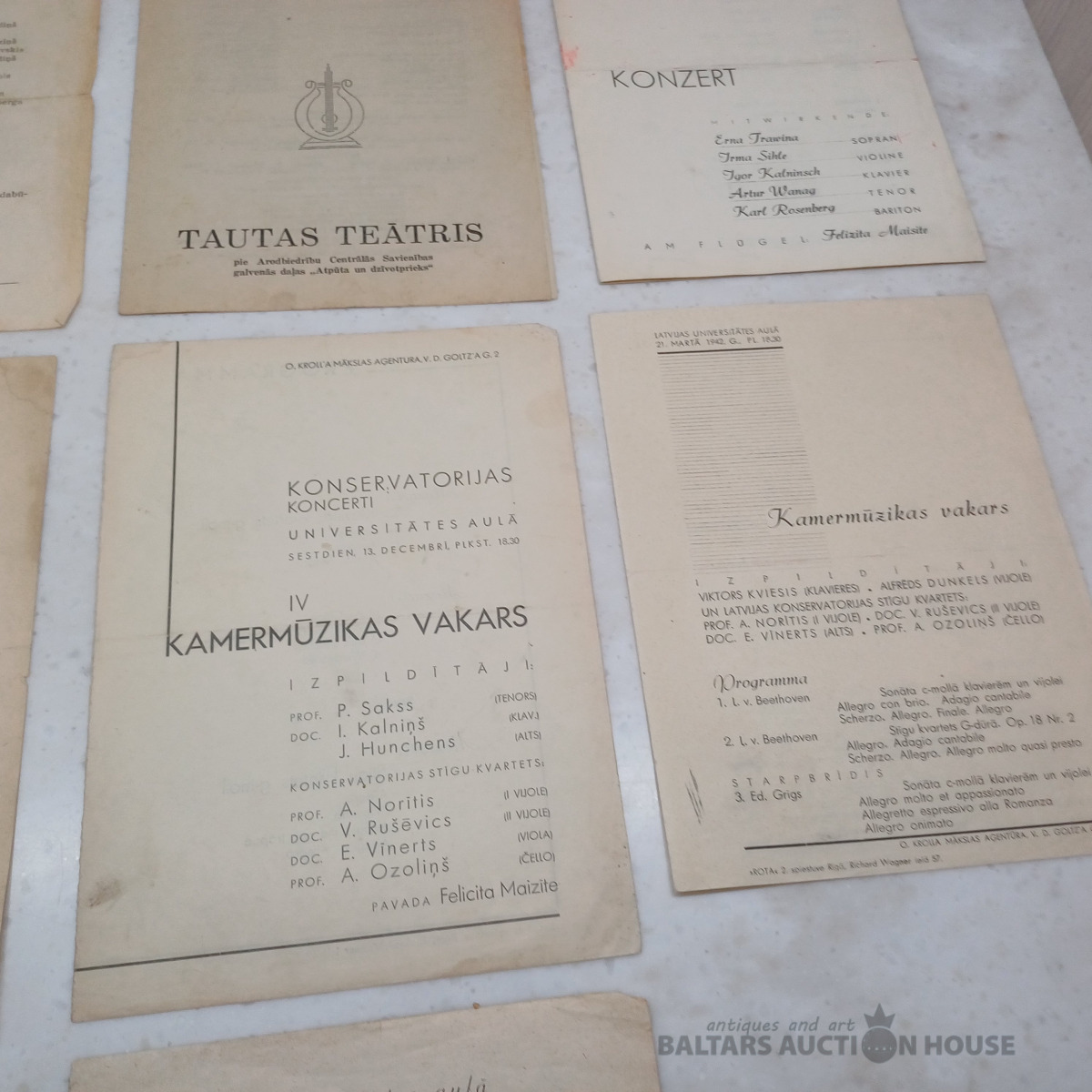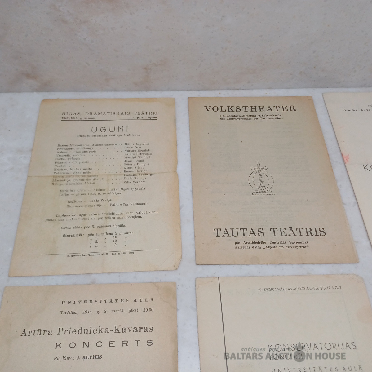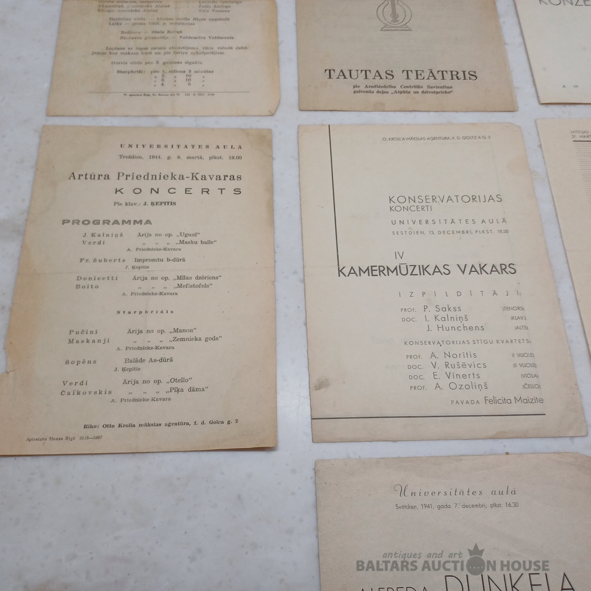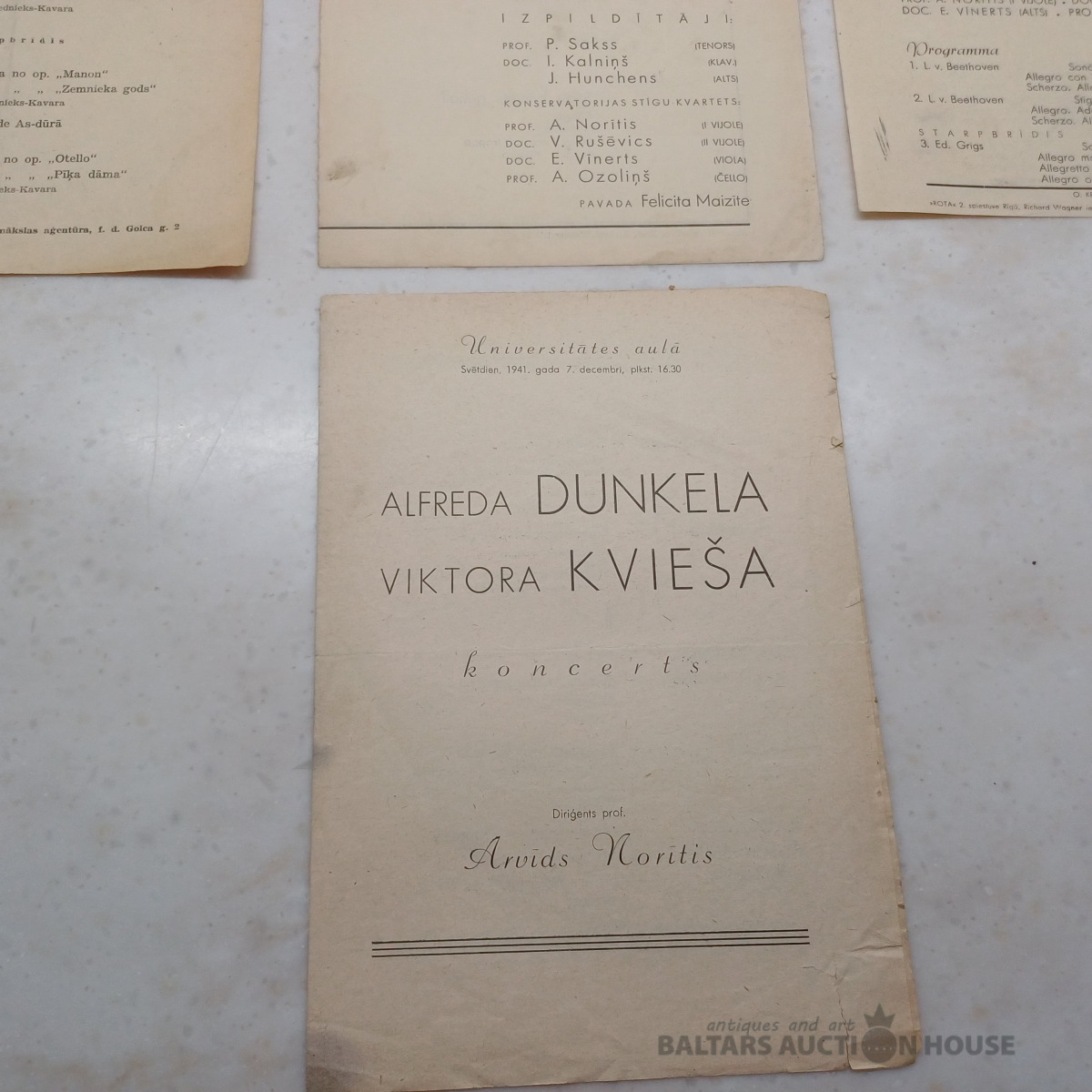 7 gab. Vācu okupācijas laiku. Konservatorijas mūzikas vakaru programmiņas u.c.